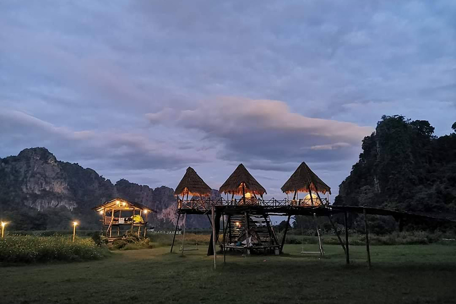 เปลี่ยนบรรยากาศมานอนแคมป์กันบ้างที่ แคมป์หมาบ้าใจดี ที่พักสไลต์แคมป์ปิ้งที่ตั้งอยู่บนโลเคชั่นท่ามกลางทุ่งหญ้ากว้างล้อมรอบไปด้วยวิวธรรมชาติและมีภูเขาหินปูนที่สูงชันตั้งเป็นฉากหลัง ที่นี่เหมาะสำหรับสายแคมป์ปิ้งมือใหม่สุดๆ เพราะนอกจากจะเดินทางไปง่ายแล้ว ยังมีไฟฟ้าพ่วงให้ใช้ฟรีๆ แบบไม่ต้องกลัวลำบากอีกด้วย ลองเปลี่ยนบรรยากาศมานอนเต็นท์สักคืน รับรองว่าฟินสุดๆ อย่างแน่นอน