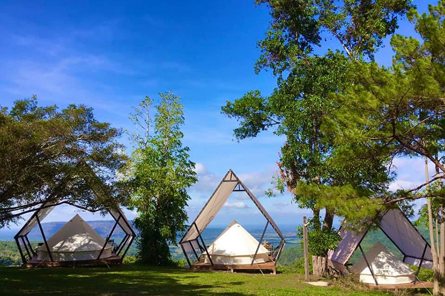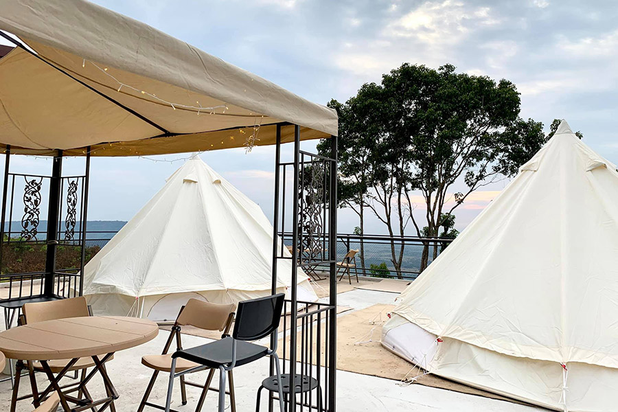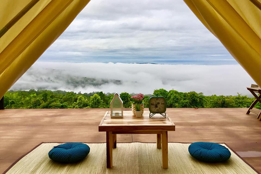 เริ่มต้นกันที่ จัมทรา แคมป์ปิเนส เนินมะปราง ณ วิวแคมป์ ขุนเขารักไทย หรือเรียกง่ายๆ ว่า วิวแคมป์ ขุนเขารักไทย ที่พักสไตล์แคมป์ปิ้งบรรยากาศอบอุ่นที่ตั้งอยู่ทามกลางขุนเขาและรายล้อมไปด้วยธรรมชาติอันร่มรื่น มาพร้อมเต็นท์กระโจมริมหน้าผา พร้อมระเบียงส่วนตัวที่สามารถฟินไปกับวิวพระอาทิตย์ตกและวิวทะเลหมอกในยามเช้า และที่สำคัญเต็มอิ่มด้วยอาหาร 2 มื้อที่รวมอยู่ในราคาเข้าพักแล้ว มื้อเย็นจะเป็นเซ็ตชาบูหม้อไฟและมื้อเช้าเป็นไข่กระทะ ข้าวต้ม สำหรับใครที่ต้องการเดินทางมาพักที่นี่สามารถใช้ Google map นำทางด้วยชื่อ วิวแคมป์ขุนเขารักไทย รับรองว่าสวยและฟินไม่แพ้ที่อื่นๆ อย่างแน่นอน