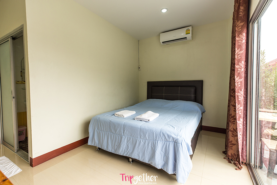 Price: ราคาเริ่มต้น 500 (ห้องพัดลมนอนได้ 2 คน), 1,000 บาท (ห้องแอร์นอนได้ 2 คน), 2,000 – 2,500 บาท (ห้องแอร์นอนได้ 4-5 คน)