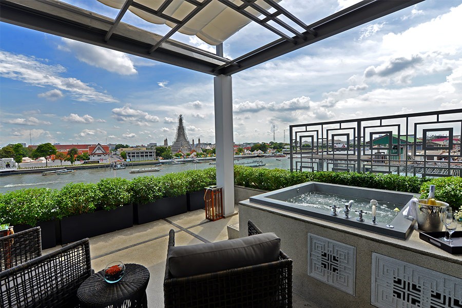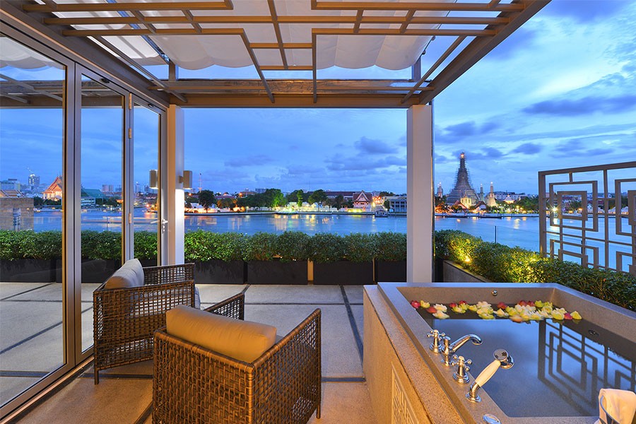 Riva Arun Bangkok ที่พักริมแม่น้ำเจ้าพระยา ที่จะทำให้คุณได้ดื่มด่ำกับวิวแม่น้ำ วิวพระปรางวัดอรุณฯ และบรรยากาศสุดโรแมนติกของพระอาทิตย์ตกในขณะที่กำลังนั่งดินเนอร์มื้อเย็นที่ห้องอาหาร Above Riva Rooftop Bar & Restaurant ของโรงแรม ห้องอาหารชั้น Rooftop เห็นวิวจากมุมสูงมองเห็นของแม่น้ำและท้องฟ้ากว้างๆ คงดีไม่น้อยถ้าได้เยือน Riva Arun Bangkok ในวันหยุดพักผ่อนหรือวันพิเศษของคุณ เพราะที่นี่มีพร้อมทั้งห้องพักที่ตกแต่งไว้อย่างสวยงาม วิวสวย หรือใครอยากแช่อ่างจากุซซี่ไปชมวิวไป Riva Arun Bangkok มีห้อง Premium Jacuzzi Suite สุดหรู บรรยากาศส่วนตัว ให้คุณได้เลือกเข้าพักอีกด้วย