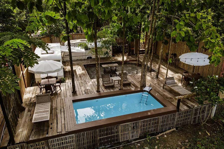 ปิดท้ายกันที่ ละลานตา แคมป์ปิ้ง&คาเฟ่ พื้นที่พักผ่อนสำหรับสายแคมป์ปิ้ง ที่ตั้งอยู่ท่ามกลางธรรมชาติสุดร่มรื่น รายล้อมไปด้วยดงต้นไผ่สีเขียว อีกทั้งยังมีพื้นที่ส่วนกลางสำหรับทำกิจกรรม แลกเปลี่ยนพูดคุยกันอีกด้วย หรือใครที่อยากผ่อนคลายก็สามารถลงเล่นน้ำได้ที่ลำธาร นอกจากนี้ยังมีดนตรีสดทุกวันเสาร์ โรงหนังกลางแจ้ง ฉายทุกวันศุกร์ วันเสาร์ และวันอาทิตย์ หากกำลังอยากไปพักผ่อนท่ามกลางธรรมชาติแบบไม่ไกลกรุงเทพฯ บอกเลยนว่าต้องลิสต์ชื่อที่พักนี้ไว้ และตามมาเช็คอินกันสักครั้ง