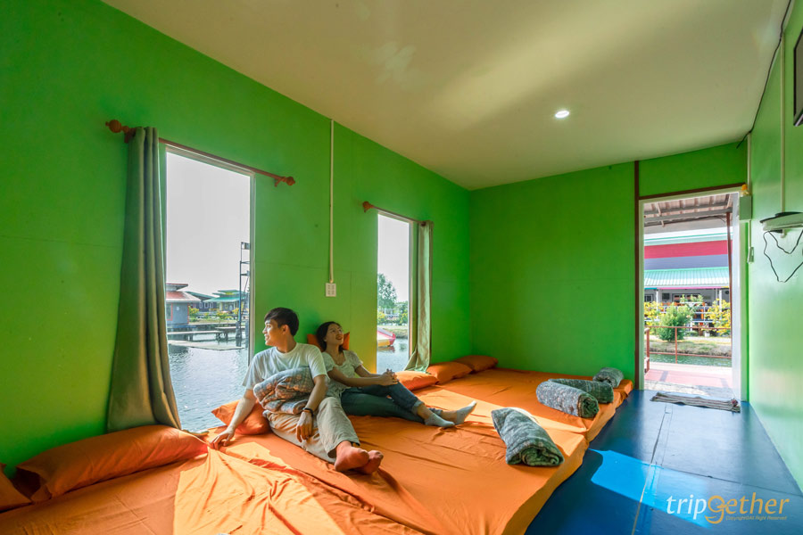 ถัดมาที่ อำพรวิว โฮมสเตย์ (Aompornview Homestay) ที่พักแหลมสิงห์ จันทบุรี กลางน้ำ บรรยากาศสุดชิลล์ มีระเบียงทางเดินเชื่อมแต่ละหลัง พร้อมเปลตาข่ายริมน้ำให้ได้ออกมานั่งเล่น รับลมเย็นๆ กัน สำหรับบ้านพักที่นี่จะรองรับเป็นกลุ่ม ห้องละ 5 คน เหมาะสำหรับการยกแก๊งค์มาใช้เวลาสนุกๆ กับกิจกรรมทางน้ำสุดมันส์และพักผ่อนแบบชิลล์ๆ ด้วยกันสุดๆ แถมยังมีอาหาร 3 มื้อแสนอร่อยให้บริการทั้งอาหารพื้นเมืองจันทบุรีและซีฟู้ดจัดเต็มกันแบบไม่อั้น!