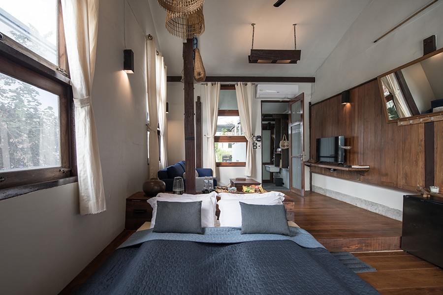 Humz Canal Stay โรงแรมเล็กๆ ริมคลองอ้อมนนท์ จังหวัดนนทบุรีนี่เอง ที่พักดีไซน์สวยน่าเปลี่ยนที่นอนไป Staycation สักคืนสองคืน ที่นี่ถูกรีโนเวทมาจากบ้านไม้เดิมที่มีอายุกว่า 70 ปี ต่อเติมและปรับเปลี่ยนด้วยความใส่ใจให้เป็นที่พักเพื่อการพักผ่อนนอนสบายเหมือนอยู่บ้านตัวเอง แถมยังได้สัมผัสวิถีชีวิตริมคลองของชุมชนบางกร่างไปในตัว สำหรับห้องพักที่ Humz Canal Stay มีเพียง 4 ห้อง 2 แบบคือ Canal Suite และ Canal Delux ซึ่งทุกห้องมาพร้อมระเบียงริมน้ำให้ผู้เข้าพักได้นั่งชิลล์ ฟังเพลง อ่านหนังสือ หรือนั่งพักสายตามมองน้ำอย่างเพลินๆ แอบกระซิบว่าทางที่พักใช้ที่นอน futon จากประเทศญี่ปุ่น เพื่อการนอนหลับที่สบายไม่ปวดหลัง แถมเจลอาบน้ำ แชมพู และโลชั่น ยังเป็นผลิตภันฑ์ออร์แกนิกผสม CBD extract (สารสกัดกัญชง) ที่มีกลิ่นสดชื่นเพื่อให้คุณได้ผ่อนคลายในวันพักผ่อนนั่นเอง ไม่เพียงแต่ที่พักเท่านั้นบริเวณใกล้เคียงยังมี The Canal Club คาเฟ่ชิลล์ๆ ที่เป็น common area ให้นั่งดื่มกาแฟ กินอาหาร อีกด้วย บอกเลยว่าใครหาที่พักใกล้กรุงเทพฯ เพื่อเปลี่ยนบรรยากาศชาร์จแบตร่างกายมาพักที่ Humz Canal Stay รับรองว่าแบตเต็มร้อยเปอร์เซ็นแน่นอน