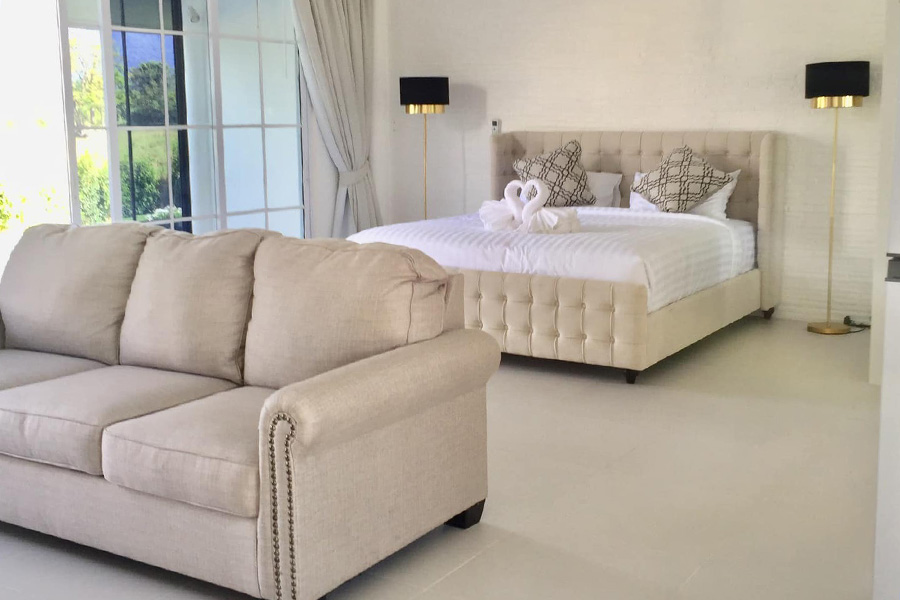 เมาน์เทน วิว พูลวิลล่า นครนายก ที่พักสไตล์พูลวิลล่าสุดชิลล์ ที่ล้อมรอบไปด้วยทุ่งนาสีเขียว สามารถมาพักผ่อนได้ทั้งครอบครัว หรือจะชวนแฟนมาสวีทก็มีห้องพักรองรับเช่นกัน ภายในห้องพักตกแต่งมาแบบเรียบหรู เฟอร์นิเจอร์โทนสีอบอุ่น เพียบพร้อมไปด้วยสิ่งอำนวยความสะดวกครบครัน นอกจากนี้ในบ้านพักยังมีอ่างจากุชชี่ให้นอนแช่น้ำมองวิวทุ่งนาได้แบบฟินๆ ซึ่งบ้านพักของที่นี่มีให้เลือกทั้งแบบ 3 ห้องนอน 3 ห้องน้ำ และแบบ 3 ห้องนอน 2 ห้องน้ำ ลูกค้าสามารถเข้าพักได้มากสุดถึง 12 คน หากใครอยากเหมาบ้านพักทั้ง 2 หลัง ทางที่พักก็มีแพ็คเกจราคาสบายๆ ให้ด้วย ที่พักวิวดีแถมมีพื้นที่กว้างขวางแบบนี้ น่าชวนคนที่บ้านมาพักผ่อนในวันหยุดจริงๆ