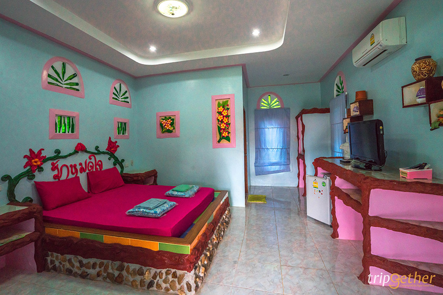 รักแรกพบ รีสอร์ท ที่พักชื่อโรแมนติกที่มีการตกแต่งด้วยสีสันสดใสสไตล์น่ารักๆ บรรยากาศร่มรื่น อบอุ่นเหมือนถูกโอบล้อมด้วยความรักตามชื่อของที่พัก รักแรกพบ รีสอร์ทเขายังมีคอนเซ็ปต์ชื่อห้องพักเก๋ๆ ด้วยนะ เช่น บ้านรักแรกพบ บ้านรักข้ามภพ บ้านรักหมดใจ บ้านรักมั่นคง และอีกมากมาย แถมเพิ่มความสนุกสนานด้วยกิจกรรมที่รีสอร์ทจัดไว้ให้ผู้เข้าพัก อย่างสวนน้ำพร้อมสไลเดอร์ที่มีขนาดใหญ่ ล่องเรือยาง ตกปลา หรือร้องคาราโอเกะ ก็เลือกเล่นได้เต็มที่เลย