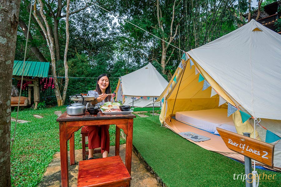 สายธารแห่งรัก รีสอร์ท ที่พักริมน้ำแก่งกระจานที่รายล้อมไปด้วยธรรมชาติ บรรยากาศเงียบสงบเหมาะแก่การพักผ่อนเป็นที่สุด โดดเด่นด้วยที่พักแบบแคมป์ปิ้งด้วยเต็นท์กระโจมสีขาวสไตล์โบฮีเมียน แม้จะเป็นเต็นท์แต่ภายในก็มีสิ่งอำนวยความสะดวกอย่างครบครัน แถมที่นี่ยังมีหมูกระทะมาเสิร์ฟให้กินกันถึงหน้าเต็นท์พร้อมกับบรรยากาศริมน้ำที่รายล้อมไปด้วยธรรมชาติสุดฟิน แต่ถ้าใครไม่อยากนอนเต็นท์เขาก็มีบริการห้องพักไว้ด้วย บรรยากาศดีขนาดนี้เลือกที่พักแบบไหนก็ฟิน