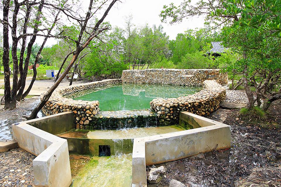 นำ้พุร้อนแห่งสุดท้ายขอบอกว่าอันซีนสุดๆ ความพิเศษของที่นี่คือ เป็นน้ำพุร้อนน้ำเค็มแห่งเดียวในประเทศไทย และมีเพียง 2 แห่งบนโลกเท่านั้น มีบ่อขนาดใหญ่ให้ได้นั่งแช่ขา และโดยรอบเป็นป่าไม้นานาพันธ์ุ นั่งตากลมกันแบบชิลล์ๆ อุณภูมิจะอยู่ระหว่าง 40 – 47 องศา นอกจากนี้ยังมีกิจกรรมอื่นๆอีก เช่น นวดแผนไทย และเดินชมธรรมชาติ แถมยังอำนวยความสะดวกมีทางสำหรับรถเข็นด้วยนะ เป็นอีกบ่อน้ำพุร้อนน่าเที่ยวมาผ่อนคลายจากความเมื่อยล้า เหมาะกับการมาเที่ยวกันทั้งครอบครัวจริงๆ