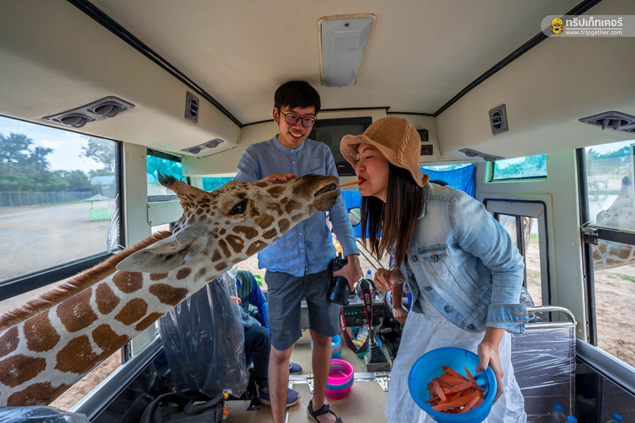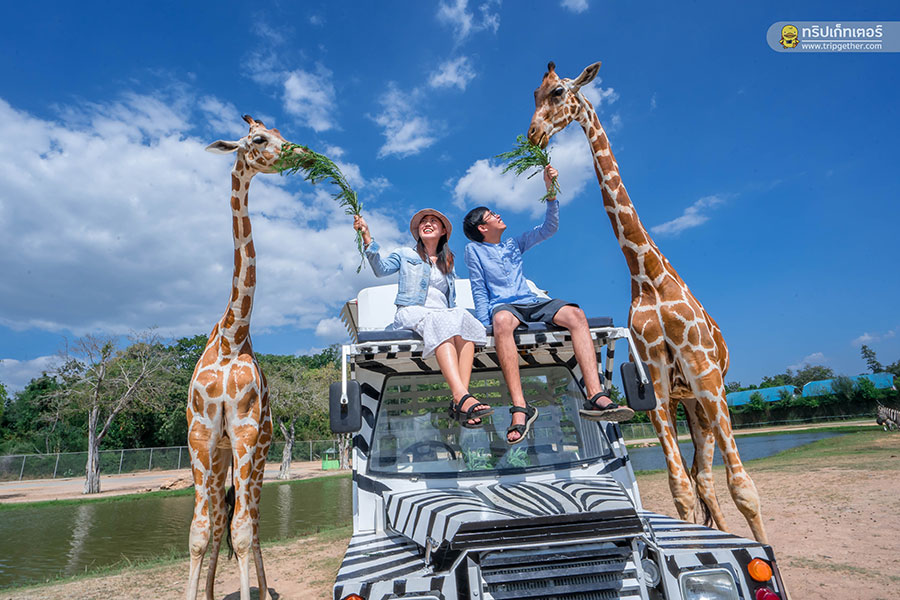 สวนสัตว์เปิด ซาฟารี ปาร์ค & แคมป์ สวนสัตว์เปิดท่ามกลางธรรมชาติบนพื้นที่กว่า 500 ไร่ ตั้งอยู่ห่างจากตัวเมืองกาญจนบุรีเพียง 28 กิโลเมตร แต่เดิมพื้นที่ตรงนี้เป็นเหมืองพลอย หลังจากที่ได้เลิกกิจการทำเหมืองพลอยแล้วจึงเปิดเป็นสวนสัตว์เปิด ซาฟารี ปาร์ค เพื่อเพิ่มพื้นที่สีเขียวสำหรับเป็นแหล่งเรียนรู้ อนุรักษ์ และขยายพันธุ์สัตว์นานาชนิด เพื่อให้เด็กๆ นักเรียน นักศึกษาได้เข้ามาเรียนรู้เกี่ยวกับชีวิตของสัตว์ต่างๆ รวมไปถึงต้องการสร้างงานสร้างรายได้ให้แก่ชุมชนอีกด้วย และในปัจจุบันสวนสัตว์เปิดแห่งนี้ได้บรรจุเป็นแหล่งเรียนรู้เขตพื้นที่การศึกษา 4 จ.กาญจนบุรี อีกด้วย หากใครชื่นชอบการถ่ายรูปที่สวนสัตว์เปิดแห่งนี้ก็มีกิจกรรม “กอดคอยีราฟถ่ายรูปได้” รับรองเลยว่าจะเปลี่ยนประสบการณ์การถ่ายรูปกับสัตว์ของคุณได้อย่างแน่นอน