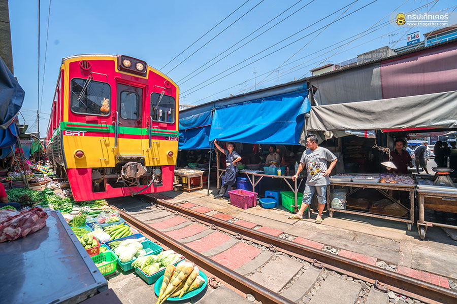 ปิดท้ายกันที่ ตลาดร่มหุบ ซึ่งตั้งอยู่ริมรางรถไฟสายแม่กลอง ซึ่งรถไปสายนี้เป็นเส้นทางรถไฟที่ให้บริการมานับ 100 ปี เริ่มดำเนินการครั้งแรกตั้งแต่ปี 2444 อดีตมีรถไฟวิ่งไปมาที่สถานที่แห่งนี้วันละ 8 เที่ยว ซึ่งในปัจจุบันนั้นเส้นทางคมนาคมขนส่งมีการพัฒนาถนนขึ้น จึงทำฝห้การเดินทางโดยถนนเข้ามามีบทบาทมากขึ้นจนทดแทนการเดินทางด้วยรถไฟ ทำให้ปัจจุบันการเดินทางโดยรถไฟสายนี้ลดลงเหลือเพียงวันละ 4 เที่ยว และในช่วงปีพ.ศ. 2527 มีการปรับปรุงตลาดข้างทางรถไฟ จึงทำให้แม่ค้าพ่อค้าขยับแผงขายของเข้ามาใกล้รางรถไฟมากยิ่งขึ้น จึงกลายเป็นที่รู้จักของนักท่องเที่ยวทั้งชาวไทยและชาวต่างชาติในนามว่า “ตลาดร่มหุบ”