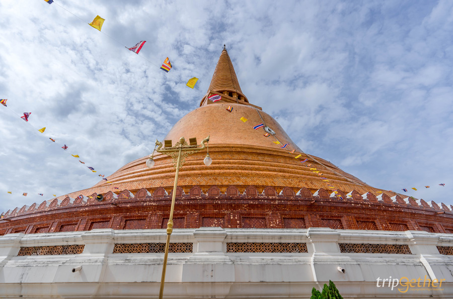 นครปฐม จังหวัดปริมณฑลที่สามารถเดินทางไปเที่ยวได้ง่ายๆ ไม่ง้อรถส่วนตัว และสามารถทำวันเดย์ทริปแบบไปเช้าเย็นกลับได้ วิธีที่เดินทางไปเที่ยวได้ง่ายที่สุดคือ การเดินทางด้วยรถไฟนั่นเอง เริ่มจากการเดินทางไปขึ้นรถไฟที่สถานีธนบุรี จะมีรถไฟออกเวลา 07.30 น. จะถึงสถานีนครปฐมเวลา 08.40 น. และเวลา 07.45 น. จะถึงสถานีนครปฐมเวลา 08.51 น. เมื่อไปถึงแล้ว สถานที่แรกที่เราจะไปถึงกันก็คือ องค์พระปฐมเจดีย์ นั่นเอง แถมรอบๆ องค์พระปฐมเจย์ดีมีของกินขายมากมาย อิ่มอร่อยได้ทั้งวัน