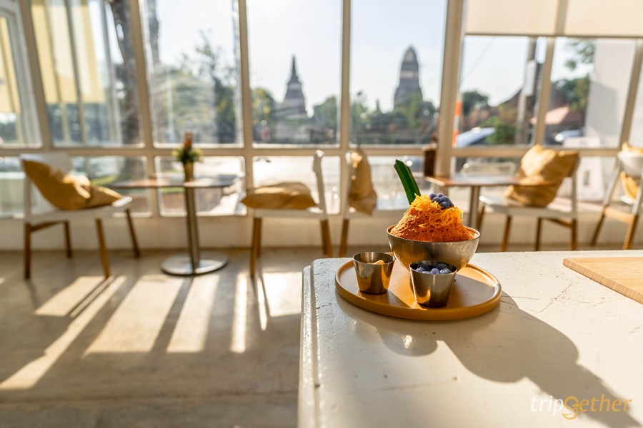 หรือคาเฟ่สไตล์มินิมอลอย่าง ปรางค์วิว ตั้งอยู่หน้าวัดราชบูรณะ สามารถอิ่มอร่อยเมนูอาหารและเครื่องดื่ม พร้อมชมวิวพระปรางค์จากฝั่งตรงข้ามได้แบบเต็มๆ จะถ่ายรูปเช็คอินก็เก๋สุดๆ ภายในร้านตกแต่งสไตล์มินิมอล เน้นสีขาวสะอาดตา มีโซนที่นั่งทั้งอินดอร์และเอาท์ดอร์ โดยโซนเอาท์ดอร์จะอยู่กลางร้าน เปิดหลังคาให้แสงอาทิตย์ส่องลงมา รับรองว่าแสงสวยสุดๆ