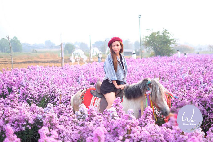 We Flower Village อีกหนึ่งฟาร์มดอกไม้สวยที่จัดเต็มด้วยทุ่งดอกมากาเร็ตสลับสีเข้มอ่อนบานสะพรั่งเต็มทุ่ง มาพร้อมพร็อพถ่ายรูปสวยเพียบทั้งช่อดอกไม้ มงกุฎดอกไม้ มุมถ่ายรูปเปียโนและอีกหลากหลายที่คอยสลับสับเปลี่ยนมาเติมความสดชื่นให้กับผู้มาเยือนตลอดทั้งปี สำหรับใครที่มีแผนการเดินทางมาเช็คอินเชียงใหม่ต้องแวะมาเก็บภาพสวยกับทุ่งดอกไม้ให้ได้เลย