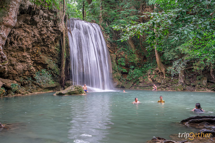น้ำตกเอราวัณ น้ำตกขนาดใหญ่ที่มีถึง 7 ชั้นที่มีชื่อเก๋ๆ ของแต่ละชั้นอย่าง ไหลคืนรัง, วังมัจฉา, ผาน้ำตก, อกผีเสื้อ, เบื่อไม่ลง, ดงพฤกษา และภูผาเอราวัณ นอกจากชื่อที่แตกต่างแล้วความสวยของแต่ละชั้นก็ยังมีเอกลักษณ์แตกต่างกันไป น้ำตกเอราวัณเป็นแหล่งท่องเที่ยวยอดฮิตที่มีนักท่องเที่ยวแวะเวียนมาอย่างไม่ขาดสายเพื่อชมความสวยงามของน้ำตกสีเขียวมรกตพร้อมเล่นน้ำเย็นๆ ท่ามกลางป่าเขาและเสียงนกร้อง นอกจากนี้ยังมีเส้นทางศึกษาธรรมชาติของน้ำตกเอราวัณที่มีความอุดมสมบูรณ์ของธรรมชาติให้ได้สัมผัสกันอย่างใกล้ชิด
