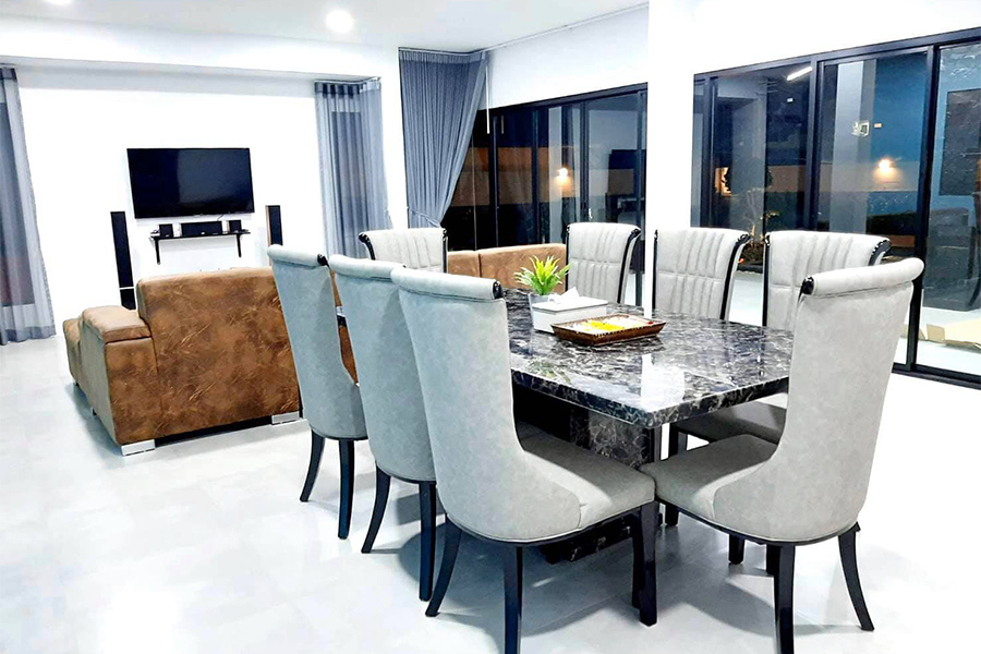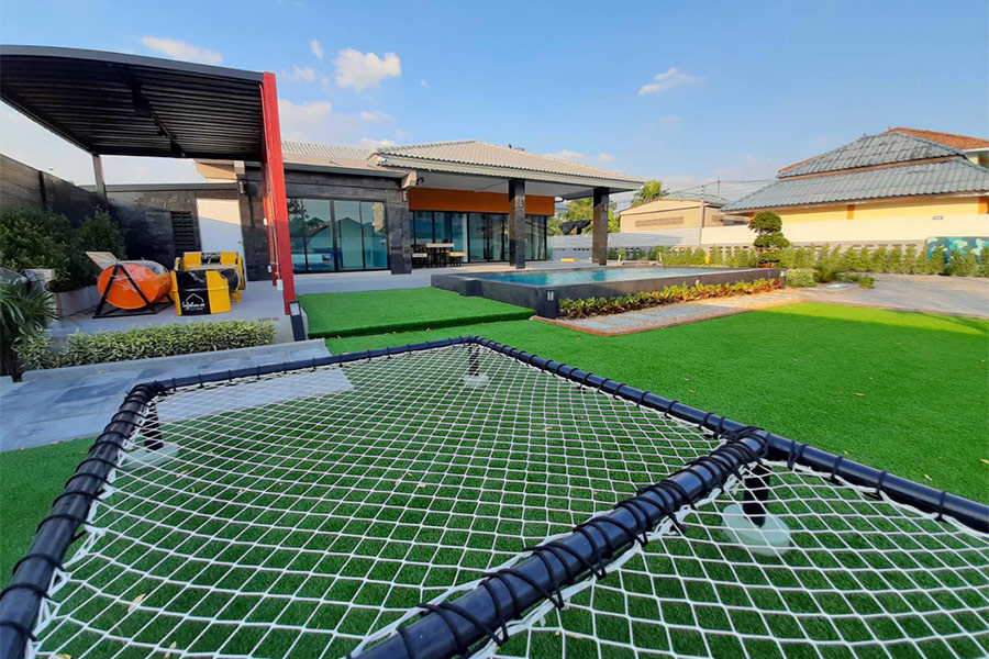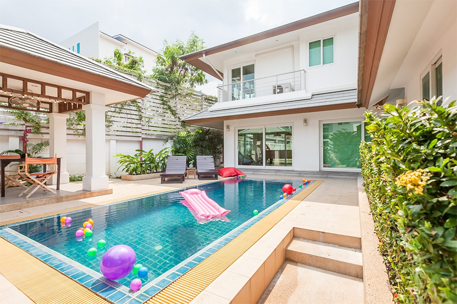 หนีความวุ่นวายจากเมืองกรุงมาพักผ่อนกันที่ เซฟเฮ้าส์ พูลวิลล่าพัทยา บ้านพักหลังใหญ่ที่ตอบโจทย์ผู้ที่ต้องการพักผ่อนแบบเป็นครอบครัว หรือจะชวนเพื่อนๆ มาปาร์ตี้ริมสระน้ำกันก็ได้ ที่สำคัญคืออยู่ไม่ไกลจากสถานที่ท่องเที่ยวในพัทยา สามารถซื้ออาหารทะเลมาปิ้งย่างกันได้ตามชอบ สไตล์บ้านพักเป็นบ้านชั้นเดียว 4 ห้องนอน 3 ห้องน้ำ สามารถเข้าพักได้สูงสุดถึง 15 คน มีสระน้ำเกลือขนาดใหญ่ ห่วงยางแฟนซี ชุดคาราโอเกะ รวมไปถึงอุปกรณ์อำนวยความสะดวกอื่นๆ อีกเพียบ