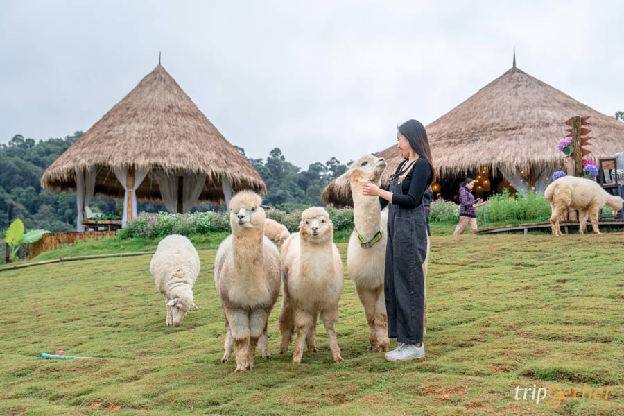 มาต่อกันเลยที่ ฟาร์มแกะอัลปาก้าม่อนแจ่ม (Alpaca Sheep Farm Mon Jam) ฟาร์มคาเฟ่ แกะอัลปาก้า ตั้งอยู่บนพื้นที่กว่า 16 ไร่ รายล้อมด้วยวิวทิวเขาและธรรมชาติแบบ 360 องศา มาพร้อมจุดเช็คอินถ่ายภาพหลายมุมเลย โดยที่นี่มีเหล่าน้องแกะหลากหลายชนิด ทั้ง พันธุ์มูลิโน พันธุ์คอลร์ริเดล และที่สำคัญคือน้องอัลปาก้าตัวขาวขนฟู หน้าตาน่ารัก มีด้วยกันทั้งหมด 4 ตัวด้วยกัน คือน้องณเดช น้องญาญ่า น้องแชมป์ และน้องแอปเปิ้ล ในส่วนของโซนคาเฟ่ก็มีบริการครบทั้งเครื่องดื่ม ขนม และอาหารหลากหลายเมนู เล่นกับน้องๆ จนเหนื่อก็แวะมานั่งเล่นเติมพลังกัน