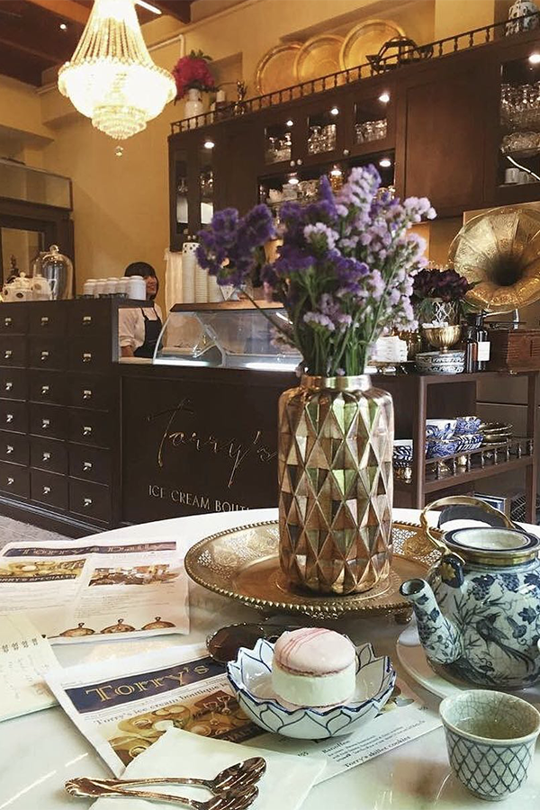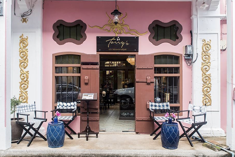 มาปิดท้ายกันที่ Torry’s Ice Cream ร้านไอศกรีมสีชมพูพาสเทลสุดน่ารักที่ตั้งโดดเด่นอยู่ใจซอยถนนรมณีย์ นอกจากสีของร้านจะโดดเด่นแล้วสถาปัตกรรมของร้านก็ยังโดดเด่นไม่แพ้กันด้วยสไตล์ เพอรานากันผสานกับชิโนโปรตุกีสที่เข้ากันอย่างลงตัวทำให้ตัวร้านดูมีเสน่ห์ตั้งแต่ภายนอกไปจนถึงภายในร้านที่ให้ความวินเทจหรูหรา สำหรับเมนูไอศกรีมก็ยังเป็นไอศกรีมอย่างดีที่มีรสชาติแปลกใหม่ให้เลือกมากว่า 70 รสชาติ แต่เมนูที่ห้ามพลสาดเลยก็คือ โอ้เอ๋วซอร์เบท์ ที่นำเอาขนมพื้นเมืองภูเก็ตมามิกซ์กับไอศกรีมได้อย่างลงตัว