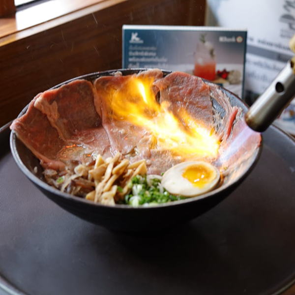 มาต่อกันที่ร้าน Misawa Osaka Tonkotsu Ramen อีกหนึ่งร้านราเมนต้นตำหรับจากโอซาก้า ประเทศญี่ปุ่น ตอนนี้ร้านได้ย้ายสาขาจากพร้อมพงษ์มาเปิดสาขาที่เดอะมอลล์ท่าพระแล้ว บรรยากาศภายในร้านก็ฟีลเหมือนนั่งกินในร้านราเมนที่ญี่ปุ่นเลยทีเดียว เมนูที่เราอยากนำเสนอมากๆ ก็คือเมนู Misawa Japanese Wagyu Shabu Ramen จะเป็นเนื้อวากิวแผ่มาแน่นเต็มๆ ชาม เบิร์นสดๆ ถึงโต๊ะเลย ทุกคนสามารถเลือกความสุกได้ตามต้องการเลยด้วย