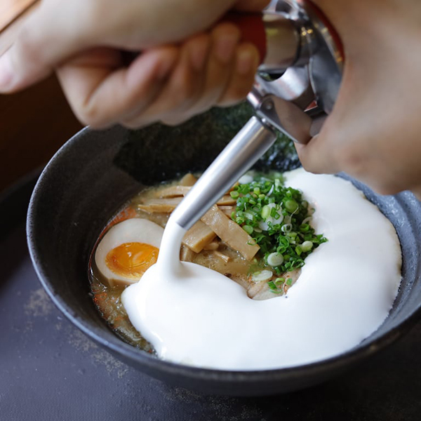 มาเริ่มที่ร้านแรกกันเลย กับร้าน Tenri Stamina Ramen ร้านราเมนชื่อดังย่านทองหล่อสาขาแรกในประเทศไทย ซึ่งร้านนี้เป็นร้านราเมนชื่อดังส่งตรงจากเมืองเทนริ ประเทศญี่ปุ่นเลยทีเดียว การันตีความอร่อยด้วย 25 สาขาทั่วโลก น้ำซุปรสชาติกลมกล่อมเป็นเอกลักษณ์ ที่ใครมากินเป็นต้องติดใจกันทุกคน เมนูที่อยากแนะนำให้ทุกคนไปลองคือ เมนูทงคตสึราเมน หรือฮากาตะราเมน ราเมนซุปกระดูกหมูรสเข้มข้น ที่นํ้าซุปได้จากการเคี่ยวกระดูกหมูจนเป็นสีขาวข้นเหมือนกับครีม ทำให้น้ำซุปหอมอร่อย และอีกหนึ่งเมนูกินเล่นที่เราอยากนำเสนอก็คือ เกี๊ยวซ่าทอด ชิ้นใหญ่ กรอบนอกนุ่มใน กับน้ำจิ้มสูตรเฉพาะของทางร้าน มีเอกลักษณ์ไม่เหมือนร้านใดอย่างแน่นอน