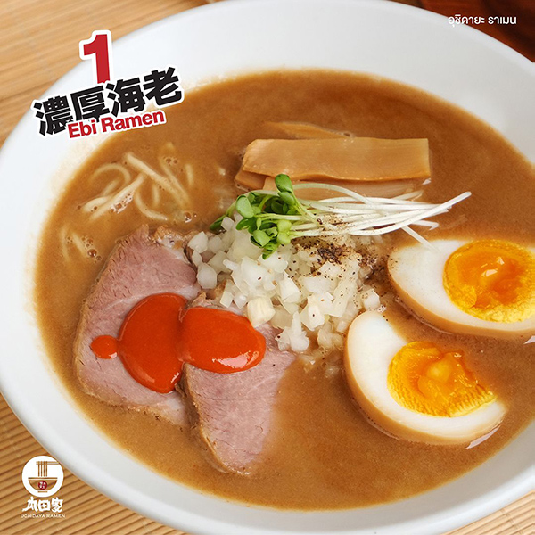 UCHIDAYA RAMEN ร้านราเมงชื่อดังย่านธนิยะส่งตรงจากโยโกฮาม่า ประเทศญี่ปุ่น การันตีความอร่อยเข้มข้นด้วยเชฟอุดะชื่อดังผู้คิดค้นรสชาติราเมนที่ได้รับการโหวตให้เป็นอันดับหนึ่งของเขตคันโตอยู่หลายครั้ง แล้วเชฟอุดะก็ได้เริ่มมาเปิดร้านอุชิดายะสาขาแรกที่ประเทศไทย จนกลายเป็นร้านราเมนชื่อชื่อดังในย่านธนิยะในเวลาต่อมา เมนูที่ไปแล้วพลาดไม่ได้เลยก็คือ เมนู Ebi Ramen จะเป็นราเมนมันกุ้ง หอมกลิ่นมันกุ้งมาก บวกกับน้ำซุปเข้มข้น เส้นราเมนเหนียวนุ่ม ชามเดียวอร่อยสะใจ คนชอบมันกุ้งต้องถูกใจเมนูนี้อย่างแน่นอน พลาดไม่ได้เลย