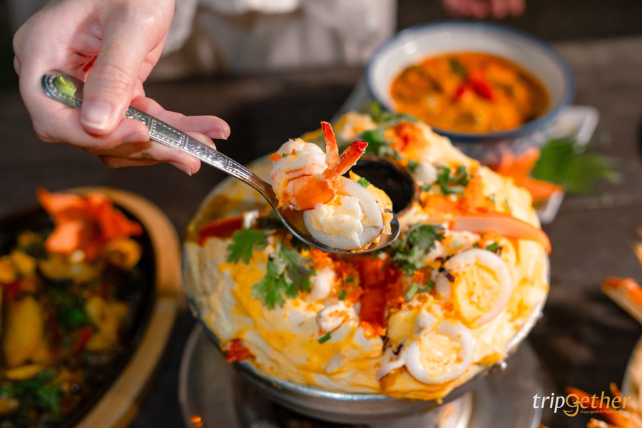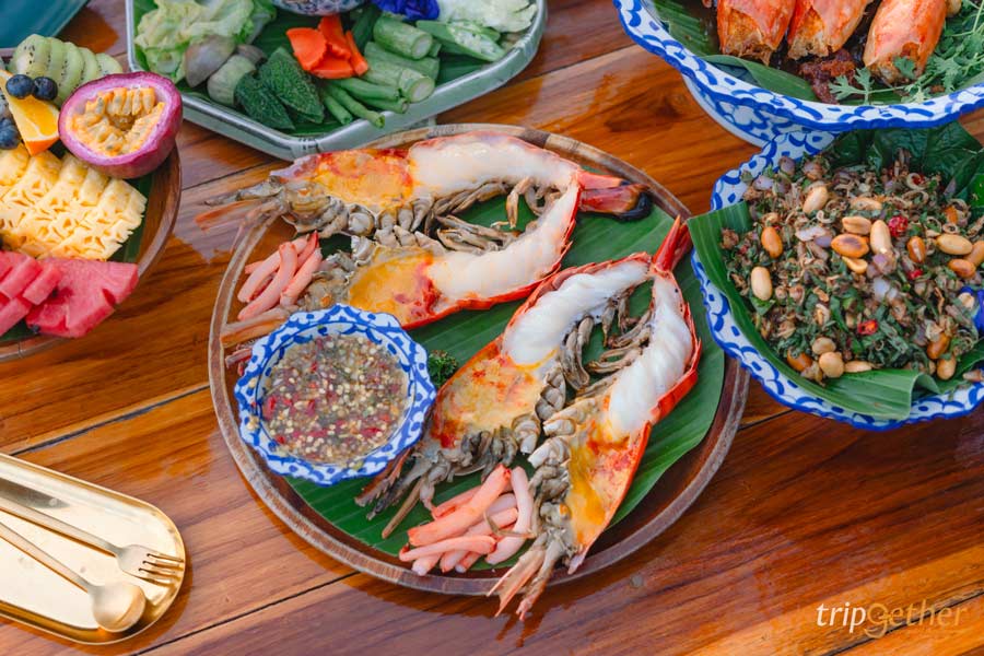มาลิ้มรสอาหารไทยอร่อยๆ พ่วงด้วยบรรยากาศสุดชิลล์ริมแม่น้ำกันต่อที่ เรือนสายน้ำ (Ruean Sai Nam Restaurant) ร้านอาหารไทยพื้นบ้าน รสชาติกลมกล่อมตามแบบฉบับคนอยุธยาแท้ๆ มาพร้อมบรรยากาศริมแม่น้ำเจ้าพระยาสดชื่นเย็นสบาย ภายใต้ต้นไม้ขนาดใหญ่ที่แผ่กิ่งก้านให้ร่มเงาร่มรื่น เหมาะแก่การมานั่งกินข้าวพักผ่อนสบายๆ เป็นที่สุดเลยล่ะ ในส่วนของเมนูอาหารที่อยากแนะนำให้สั่งมาชิมกันเลยก็คือ สะเดาน้ำปลาหวาน น้ำพริกกะปิปลาทู แกงเขียวหวานเนื้อคั่ว กุ้งราดซอสมะขาม และห้ามพลาดเมนู กุ้งแม่น้ำเผา ตัวโตมันฉ่ำย่างบนเตาถ่าน พอเวลาสุกเนื้อกุ้งจะเด้งฟูล้นขึ้นมาจากเปลือกน่ากินสุดๆ ปิดท้ายมืออร่อยด้วย ข้าวเหนียวมะม่วง แถมที่ร้านยังมีดนตรีสดเพราะๆ ให้ฟังพร้อมกับชมวิวพระอาทิตย์ตกบอกเลยว่าโรแมนติกมาก