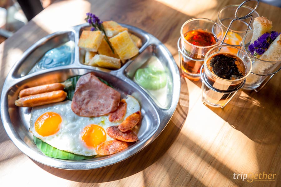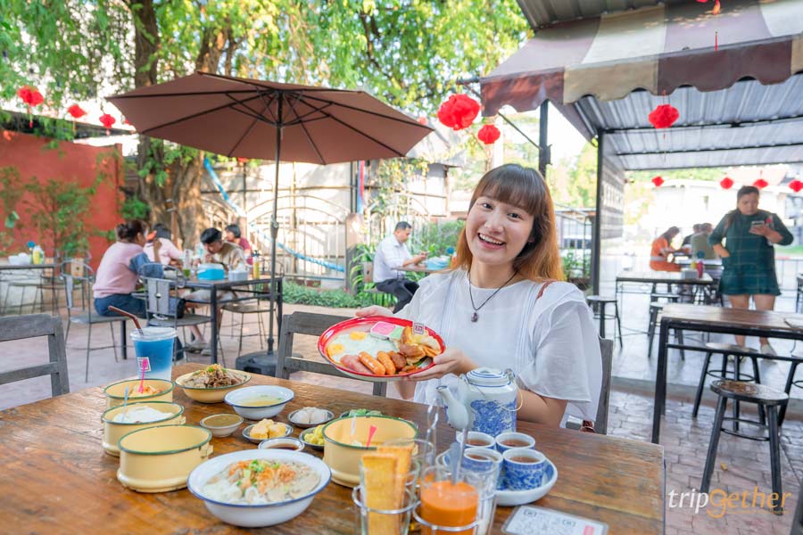 มาเชียงใหม่ทั้งที่จะพลาดร้านนี้ได้ยังไง! โกปี๊ คาเฟ่ ร้านอาหารเช้าเชียงใหม่ เจ้าดังในย่านนิมมานฯที่อาหารอร่อย และถ่ายรูปสวย ด้วยการตกแต่งสไตล์จีนผสมโมเดิร์น บวกกับบรรยากาศร่มรื่นสบายๆ ให้ฟีลเหมือนมานั่งกินข้าวที่โรงเตี๊ยมเลยล่ะ อาหารเช้าของที่นี่มีให้เลือกเยอะมาก ทั้งอาหารจานเดียว ขนมหวาน ของกินเล่นและเครื่องดื่ม แถมราคาไม่แรง มีโซนให้นั่งทั้ง indoor และ outdoor สำหรับเมนูอิ่มแบบจุกๆ ยามเช้าแนะนำเลยว่าให้จัด โกปี๊เบรคฟาสต์เซ็ตใหญ่ อร่อยครบคาวหวาน เสิร์ฟในถาดขนาดใหญ่ มีแฮม ไส้กรอก ไข่ดาว กุนเชียง และขนมปังสังขยา เรียกได้ว่าคุ้มสุดๆ
