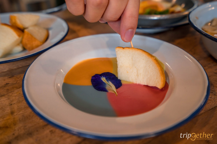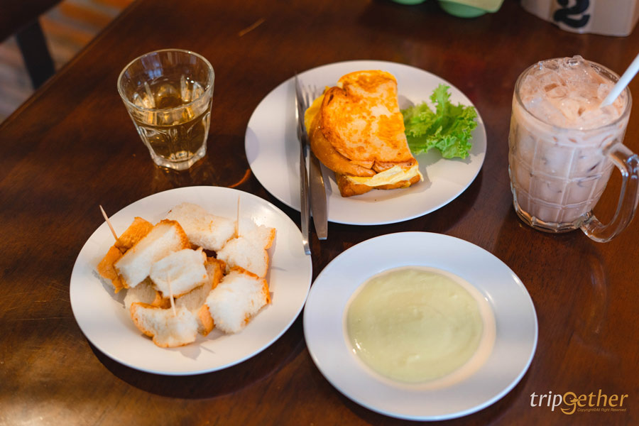ถัดมาที่อีกหนึ่งในลิสต์ ร้านอาหารเช้าเชียงใหม่ ยอดนิยมในตัวเมือง อย่าง โกเผือก โกดำ ร้านอาหารเช้าเล็กๆ ไวบ์ดีน่านั่ง ที่มาพร้อมเมนูซิกเนเจอร์สุดไวรัลที่ทุกโต๊ะมาต้องสั่งมาลิ้มลองความอร่อย นั่นก็คือ ชุดขนมปังสังขยา 4 สี ซึ่งประกอบไปด้วยสีฟ้าจากดอกอัญชัญ สีชมพูจากบีทรูท สีเขียวจากชามะลิ และสีส้มจากชาไทยนั่นเอง เป็นเมนูไฮไลท์ที่นอกจากจะรสชาติอร่อย ยังแชะภาพลงสตอรี่สวยๆ เก๋ๆ ได้อีกด้วยนะ ความอร่อยยังไม่หมดเพียงเท่านี้เพราะที่ร้านเค้ายังมี ก๋วยจั๊บญวน ไข่กระทะ ข้าวต้ม ไข่ลวก ปังอ้อย เครื่องดื่มและน้ำสมุนไพรต่างๆ ที่จะทำให้เราเริ่มวันใหม่กันอย่างสดชื่นแน่นอน