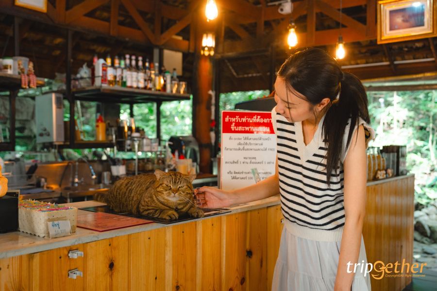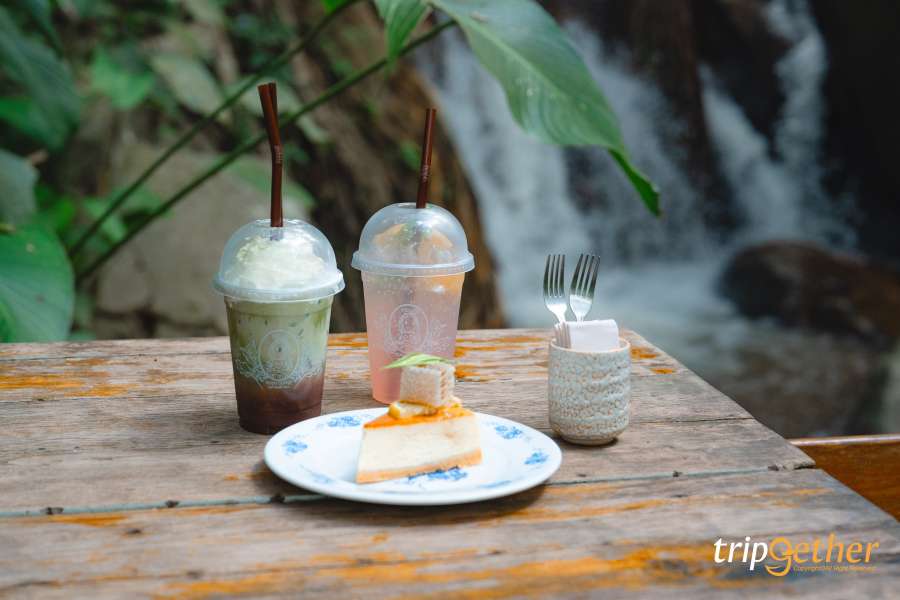 ก่อนจะเข้าหมู่บ้านแม่กำปอง แวะมาจิบกาแฟ กินขนม ลูบพุงเหมียวเทดดู้พร้อมเดอะแก็งค์ ที่ Teddu Coffee ร้านคาเฟ่กลางป่าริมน้ำตก ไม่ว่าจะนั่งมุมไหนก็สามารถสัมผัสความสวยงามของธรรมชาติได้ทุกมุม โดยร้านจะแบ่งที่นั่งออกเป็น 2 โซน ได้แก่ โซน Indoor เป็นที่นั่งเคาน์เตอร์บาร์เล็กๆ จิบเครื่องดื่มไปดูบาริสต้าชงเครื่องดื่มไป หรือใครที่เป็นสายกาแฟ ห้ามพลาดกับเมนูกาแฟปลูกเองแบบออร์แกนิค บอกเลยว่ากาแฟของทางร้านดีมากต้องมาลอง หรือจะออกไปนั่งโซน Outdoor นั่งริมระเบียงติดลำธาร ได้ฟีลธรรมชาติ ฟังเสียงน้ำไหล เสียงธรรมชาติ แถมยังเป็นมุมสวยถ่ายภาพอีกด้วย นอกจากนี้อีกหนึ่งจุดที่ต้องไปเก็บภาพ ‘สะพานแขวนเหนือยอดไม้’ สะพานแขวนทอดยาวท่ามกลางป่าข้ามลำธารดีต่อใจมาก ส่วนเมนูเครื่องดื่มและขนมแนะนำ เช่น ฮันนี่เลม่อนชีสเค้ก ครัวซองต์ไข่เค็มลาวา ครัวซองต์อัลมอนด์ และเครื่องดื่มอีกหลายเมนู คอมเฟิร์มว่าอร่อยทุกเมนูเลยล่ะ