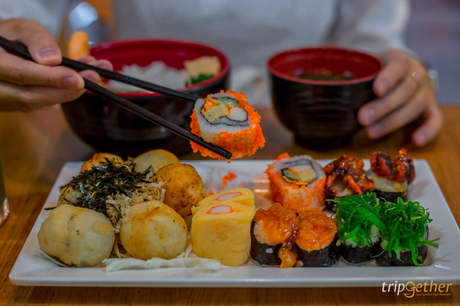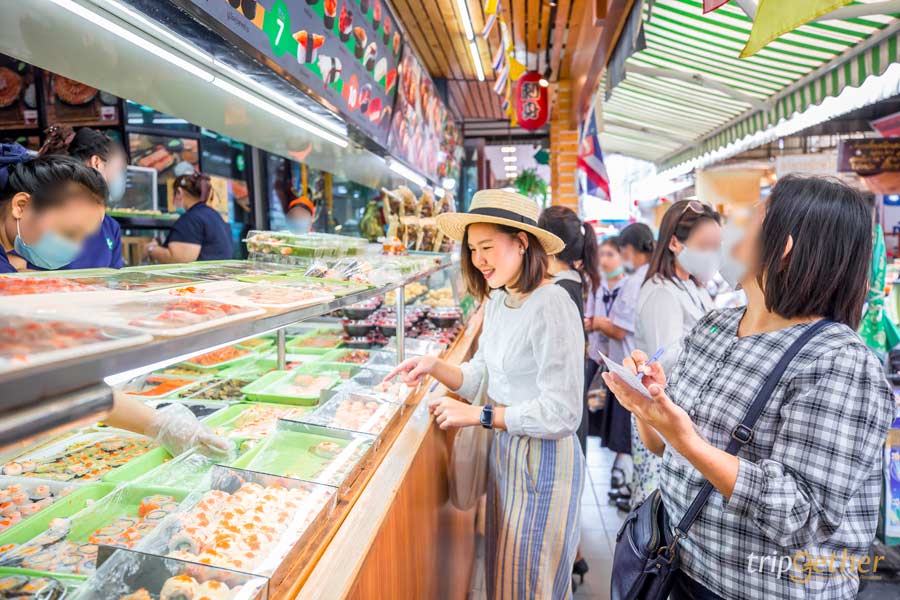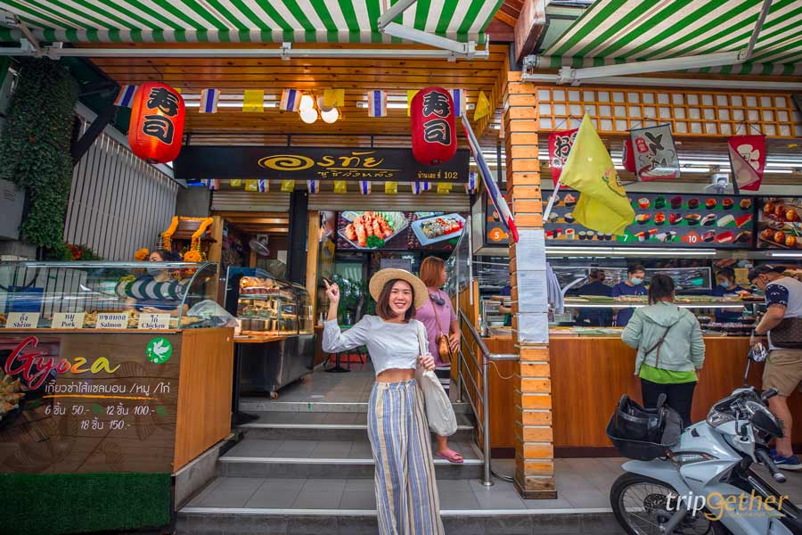 เริ่มต้นที่ร้าน อรทัย ซูชิวังหลัง ร้านซูชิเจ้าดังที่เปิดมานานหลายสิบปี เรียกได้ว่าเป็นจุดหมายปลายทางของการมาเยือนวังหลังเลยก็ว่าได้ ตัวร้านแบ่งออกเป็น 2 โซน คือโซนซื้อกลับบ้าน และโซนนั่งกินที่ร้าน เมนูเด็ดของร้านหนีไม่พ้นซูชิที่มีให้เลือกหลากหลายหน้าในราคาเบาๆ เริ่มต้นชิ้นละ 5 บาทเท่านั้น นอกจากนี้ยังมีทาโกะยากิและเมนูอาหารญี่ปุ่นอื่นๆ อีกเพียบ! ใครที่จะมาบุกวังหลังห้ามพลาด ร้านเด็ดวังหลัง ร้านนี้เลย