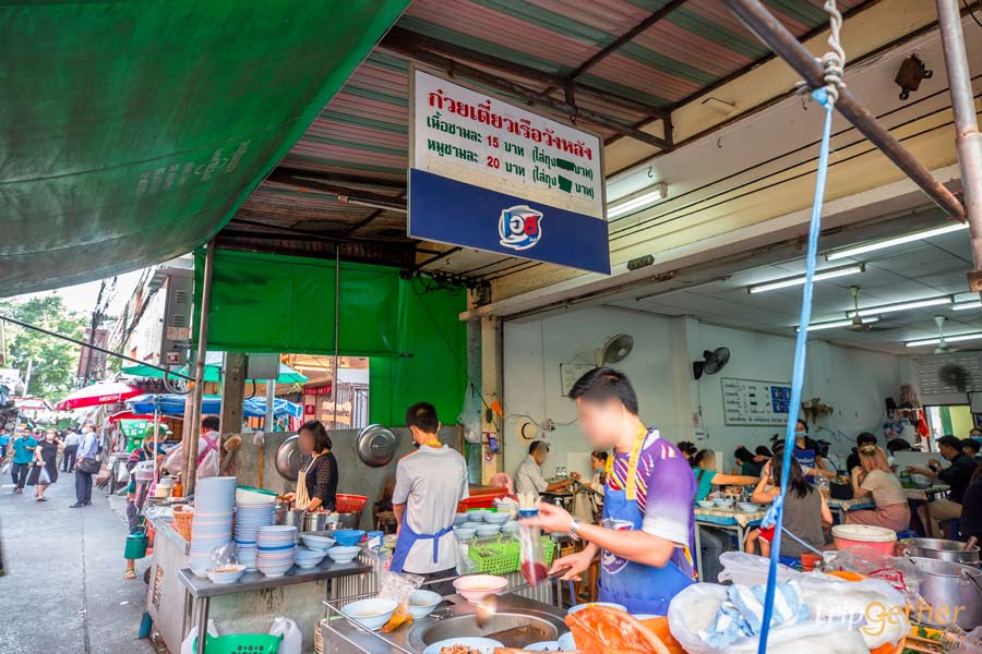 อิ่มอร่อยราคาเบาๆ กับ ร้านก๋วยเตี๋ยวเรือวังหลัง ร้านเด็ดวังหลังที่อยู่คู่ตลาดมาอย่างยาวนาน สำหรับเมนูที่อร่อยจนต้องยกนิ้วให้เลยก็คือ ก๋วยเตี๋ยวเนื้อ น้ำซุปเข้มข้นหอมสมุนไพร ปรุงรสมาอย่างกลมกล่อม กินคู่กับแคปหมูกรอบกรุบ อร่อยเข้ากันมาก แนะนำให้ก๋วยเตี๋ยวเลิฟเวอร์มาลองสัมผัสความอร่อยกับน้ำซุปรสจัดจ้านของที่นี่