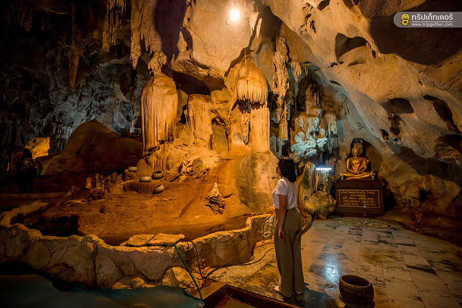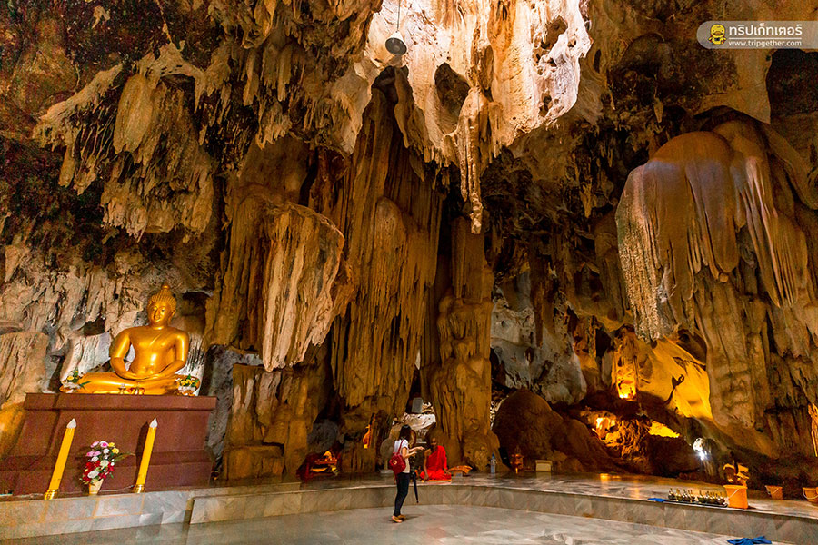 วัดถ้ำเสือ จ.กาญจนบุรี วัดสวยชื่อดังของจังหวัดกาญจนบุรี ตั้งอยู่ที่อ.ท่าม่วง ด้วยตัววัดที่ตั้งอยู่บนเนินเขาสูงท่ามกลางทัศนียภาพที่งดงาม พร้อมวิวทุ่งนาอันเขียวขจี ก่อนจะขึ้นไปชมความสวยงามของวัดต้องเดินบนบันไดนาคสามสายขึ้นเขาไปสายละ 158 ขั้น ด้วยความสวยงามระหว่างทางนั้นทำให้ได้ภาพสวยๆ เพียบ แต่ถ้าใครที่เดินขึ้นลงไม่ไหวทางวัดก็มีลิฟท์ให้บริการ คนละ 10 บาท ขึ้นมาถึงบริเวณวัดจะได้ชมความสวยงามของทะเลสาบ เขื่อนวชิราลงกรณ์อย่างชัดเจน และต้องสะดุดตากับพระพุทธรูปปางประทานพรที่ใหญ่ที่สุดในจังหวัดกาญจนบุรี นอกจากนี้ยังมีพระเจดีย์เกษแก้วปราสาทที่งดงามมาก