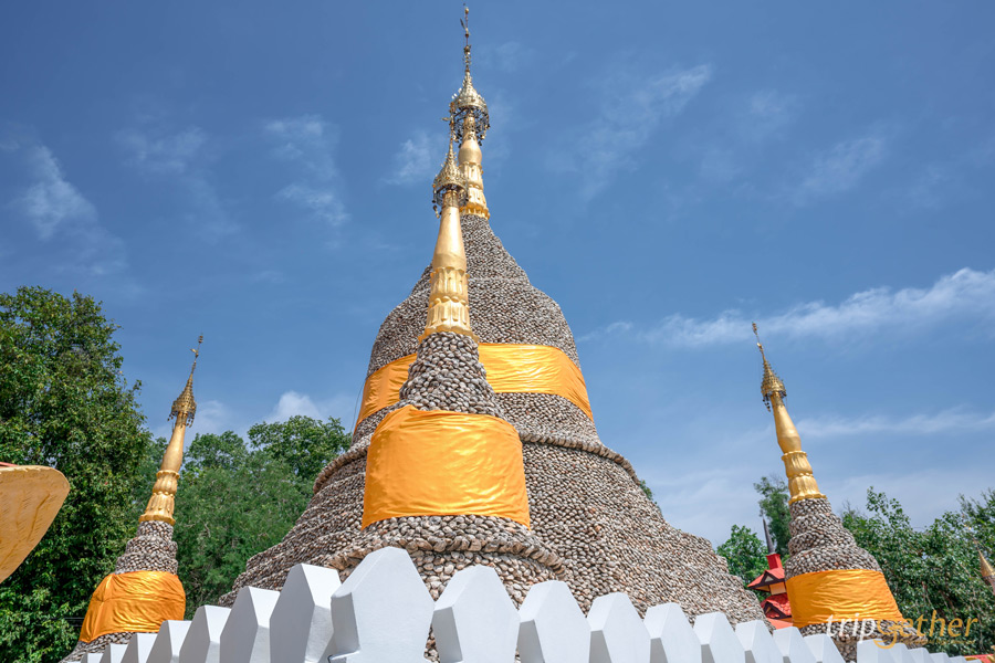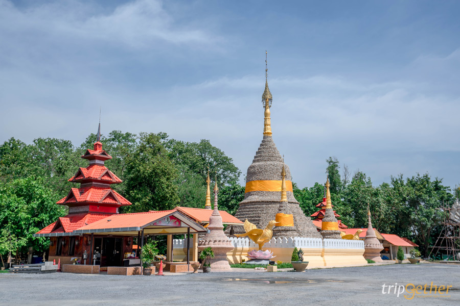 วัดเจดีย์หอย มาตื่นตากับองค์เจดีย์ที่สร้างจากเปลือกหอย เมื่อเดินมาดูใกล้ๆ จะเห็นได้ว่าเปลือกหอยเรียงกันอย่างเป็นระเบียบและสวยงาม นอกจากองค์เจดีย์ที่เป็นไฮไลท์ ก็ยังมีวิหารซึ่งเป็นที่ประดิษบานขององค์พระประธานปางมารวิชัย ทรงเครื่องจักรพรรดิ์ ประทับอยู่บนฐานชุกชีลายปูนปั้นที่อ่อนช้อย สวยงามมากๆ บวกกับบรรยากาศในวิหารที่เงียบสงบ เป็นอีกที่ที่เหมาะกับการมานั่งสวดมนต์ขอพร