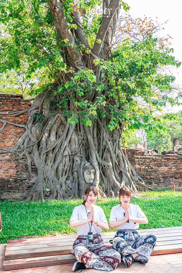 เริ่มต้นกันที่ วัดมหาธาตุ วัดสำคัญขวัญใจนักท่องเที่ยวอันดับต้นๆ ของเมืองอยุธยา ที่มักจะเป็น 1 ใน 9 วัดที่นักหลายคนนิยมมาชมถึงความงามและเรียนรู้ประวัติศาสตร์ไปพร้อมกัน วัดแห่งนี้สร้างขึ้นในสมัยสมเด็จพระบรมราชาธิราชที่ 1 ราวปี พ.ศ. 1917 ถึงวันนี้ก็มีอายุประมาณ 640 ปี ภายในวัดประกอบด้วยพระปรางค์ขนาดใหญ่ เจดีย์ทรงแปดเหลี่ยม และวิหาร และโบราณวัตถุต่างๆ ที่ถึงถูกเพลิงไหม้เมื่อคราวเสียกรุงครั้งที่ 2 แต่ก็ยังจินตนาการได้ถึงความยิ่งใหญ่อลังการ ส่วนมุมไฮไลท์ที่โดดเด่นไม่เหมือนใคร ก็คือ เศียร์พระพุทธรูปหินทราย ที่ถูกปกป้องด้วยรากของต้นโพธิ์ใหญ่ สวยงาม อัศจรรย์ และเป็นที่รู้จักของชาวต่างชาติจำนวนมาก