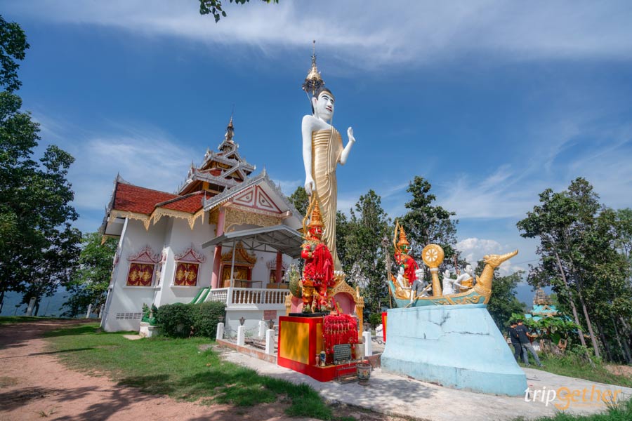 ขับรถออกจากตัวอำเภอปายไปประมาณ 2 กิโลเมตร ก็จะพบกับ วัดสวยแม่ฮ่องสอน พิกัดถดัมา นั่นก็คือ วัดพระธาตุแม่เย็น เป็นวัดดังแห่งอำเภอปายที่อยู่บนยอดเขา ท่ามกลางธรรมชาติ โดดเด่นด้วยพระพุทธรูปสีขาวองค์โต หรือ พระพุทธโลกุตระมหามุนี ซึ่งเราจะต้องฟันฝ่าบันไดถึง 300 ขั้นเพื่อขึ้นไปกราบไหว้ นอกจากนี้ด้านบนยังมีวิวสวยๆ ของตัวเมืองปายและแม่น้ำปายให้ได้ชมกันด้วยนะ รวมถึงภายในวัดยังมีสถาปัตยกรรมสำคัญๆ อย่างเช่น พระอุโบสถ ซึ่งมีลักษณะผสมผสานศิลปะล้านนาและพม่าที่สวยงาม มีเจดีย์ทรงระฆังแบบพม่าซึ่งตั้งอยู่ด้านหลังอุโบสถ และประดิษฐาน พระนอน ให้เราได้กราบสักการะขอพร