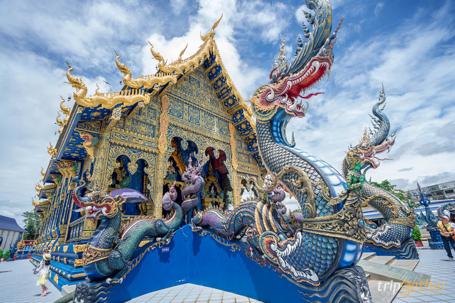 วัดร่องเสือเต้น วัดสวยและมีชื่อเสียงของจังหวัดเชียงราย ที่ไม่อยากให้ทุกคนพลาดไปสักการะ เพราะที่นี่โดดเด่นด้วยวิหารสีน้ำเงินตัดกับสีทองที่มีความสวยงามแปลกตาด้วยศิลปะประยุกต์ที่เป็นเอกลักษณ์เฉพาะของ สล่านก ศิลปินท้องถิ่นชาวเชียงราย ที่เคยเป็นลูกศิษย์ของอาจารย์เฉลิมชัย โดยศิลปะส่วนหนึ่งมีความคล้ายกับผลงานของอาจารย์เฉลิมชัย และอาจารย์ถวัลย์ โดยเฉพาะพระวิหารตั้งแต่ผลงานประติมากรรมพญานาคที่ใช้เฉดสีเดียวกันนั้นมีความชดช้อย และลวดลายแตกต่างจากประติมากรรมทั่วไปอย่างเห็นได้ชัด บอกเลยว่าวัดร่องเสือเต้นสวยงามจนเกินกว่าจะบรรยายได้หมด ใครเป็นสายบุญต้องมาชมด้วยตาตัวเองสักครั้ง