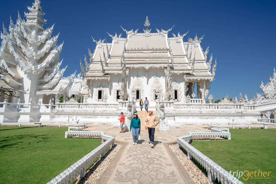 วัดร่องขุ่น วัดชื่อดังของจังหวัดเชียงราย และยังเป็นอีกหนึ่งแลนด์มาร์คที่ต้องมาให้ได้ วัดได้รับการบูรณะโดยอาจารย์เฉลิม ชัยโฆษิตพิพัฒน์ จิตรกรชาวเชียงราย ผู้เป็นศิลปินแห่งชาติสาขาทัศนศิลป์ (จิตรกรรม) จนกลายเป็นศาสนสถานที่งดงามด้วยสถาปัตยกรรมและงานศิลปะที่เต็มไปด้วยลวดลายอ่อนช้อยประณีตละเอียดละออ ตัวอุโบสถของวัดมีสีขาวบริสุทธิ์จนกลายเป็นไฮไลท์ที่ใครมาก็ต้องขอถ่ายรูปเป็นที่ระลึกเก็บไว้ และวัดร่องขุ่นเป็นอีกวัดที่อยากให้ทุกคนที่มาเยือนเชียงรายได้ชื่นชมความงดงามและมาสักการะสักครั้งเพื่อความเป็นสิริมงคล