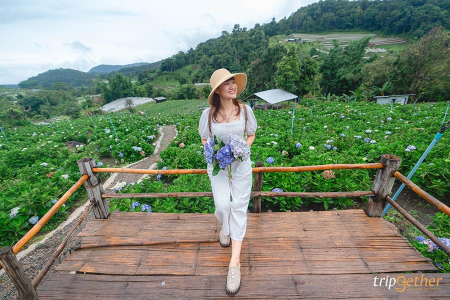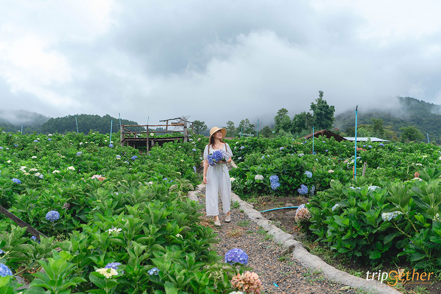 ทุ่งดอกไฮเดรนเยียร์ สวนคุณทองดี ตั้งอยู่ที่บ้านผาหมอน อำเภอจอมทอง จังหวัดเชียงใหม่ สำหรับคนที่แพลนเที่ยวดอยอินทนนท์สามารถแวะถ่ายรูปและชื่นชมความงดงามของดอกไฮเดรนเยียร์กันได้ บอกก่อนเลยว่าที่นี่ต้องเช่ารถโฟวิลจากหมู่บ้านไปที่สวนนะ แต่รับรองพอมาถึงแล้วประทับใจแน่นอนเพราะทุ่งดอกไฮเดรนเยียร์ สวนคุณทอง อยู่กลางหุบเขาเคล้าสายหมอก แถมอากาศเย็นสบายตลอดทั้งปี สำหรับดอกไฮเดรนเยียร์จะบานสะพรั่งในช่วงฤดูหนาวประมาณปลายปี ฉะนั้นถ้าต้องการรูปสวยๆ แนะนำให้มาช่วงเดือนพฤศจิกายน – ธันวาคม