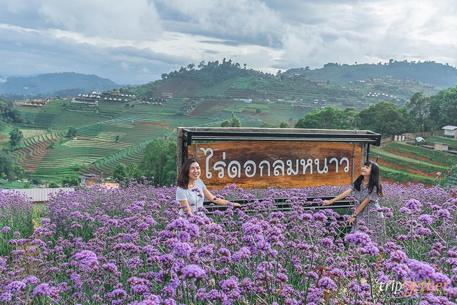 ไร่ดอกลมหนาว ตั้งอยู่อำเภอแม่ริม ไม่ไกลจากอำเภอเมืองเชียงใหม่ ที่ไร่จัดเต็มดอกไม้ให้ได้มาเช็คอินถ่ายรูปสวยๆ ไม่ว่าจะดอกมากาเร็ต ดอกหงอนไก่ ดอกกระดาษ ดอกเวอร์บีน่า ดอกซีลเวียแดง และดอกบายไม่รู้โรย บอกเลยว่ามองไปทางไหนก็สีสันสดใสสบายตาและไม่เพียงเท่านั้นจากไร่ยังมองเห็นวิวทิวเขาสีเขียวแบบเต็มๆ ตาอีกด้วย สำหรับช่วงที่ดอกไม้เริ่มบานสวยงามเต็มทุ่งคือช่วงปลายเดือนกันยายนไปจนถึงกุมภาพันธ์กันเลย ใครเตรียมขึ้นเหนือเที่ยวเชียงใหม่อย่าลืมเตรียมชุดสวยๆ มาเช็คอินที่สวนดอกไม้กันนะ รับรองว่าได้รูปปังแน่นอน