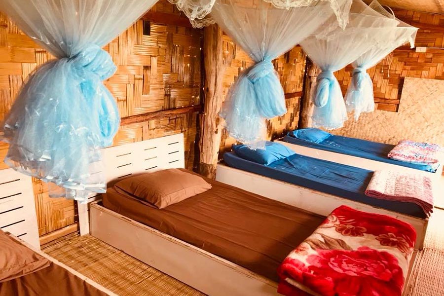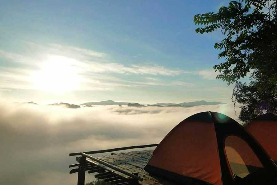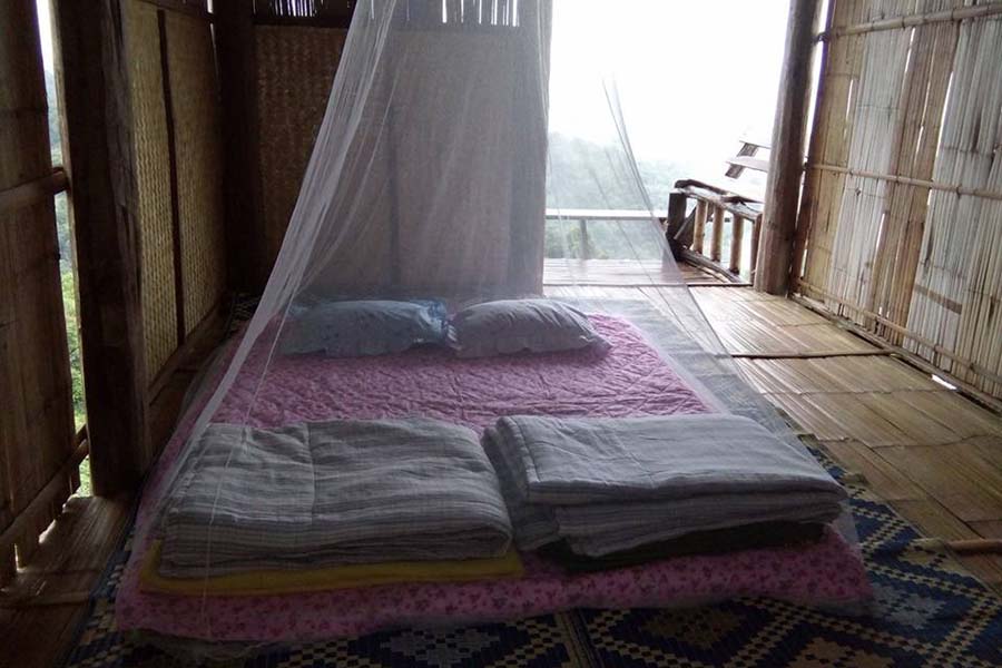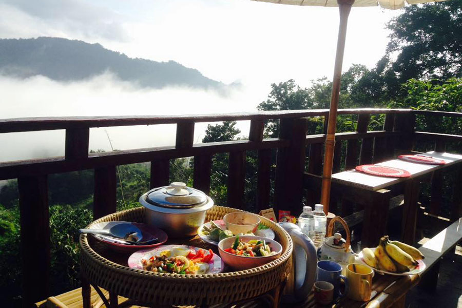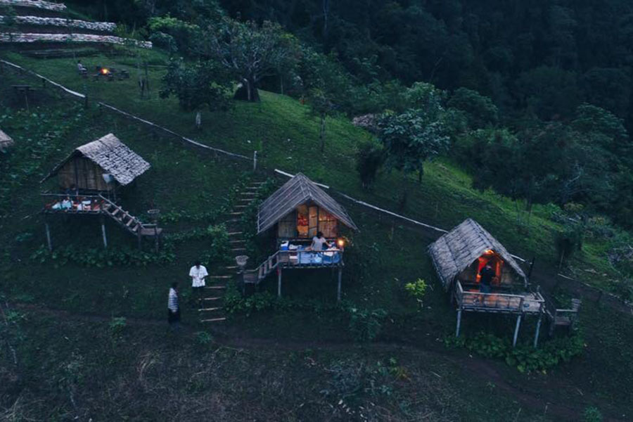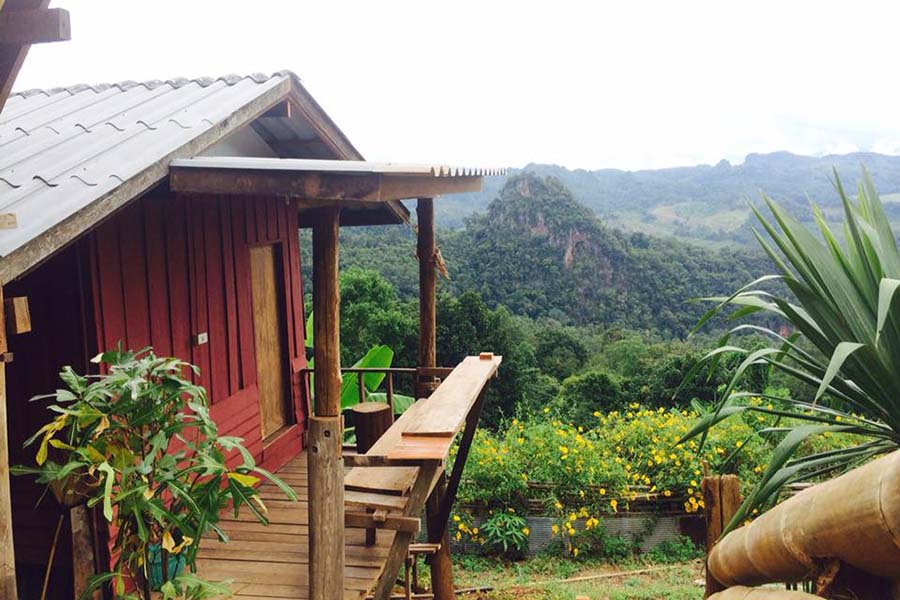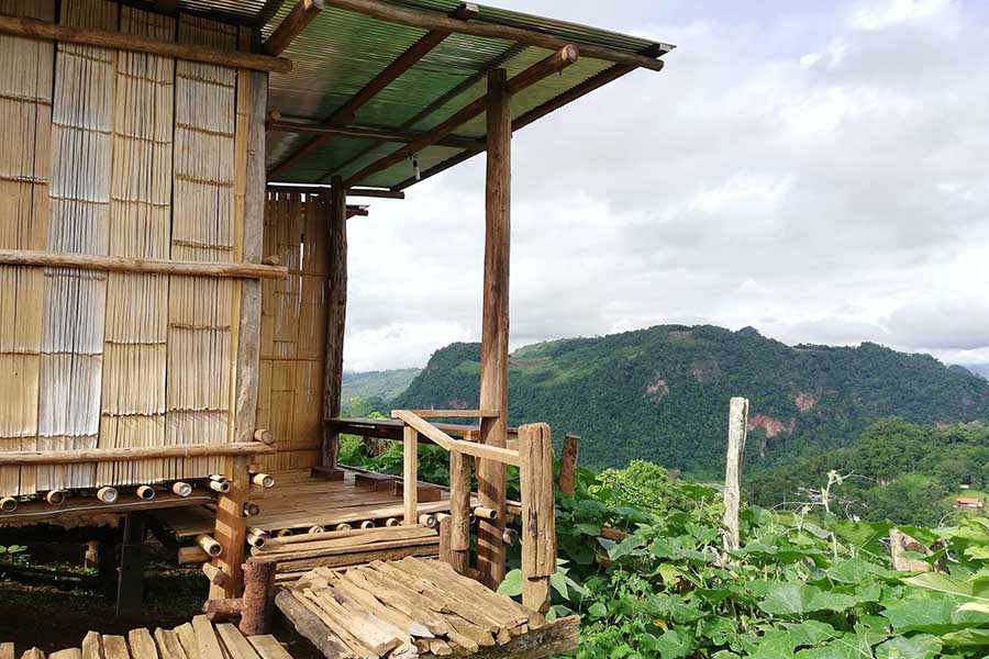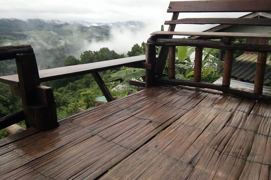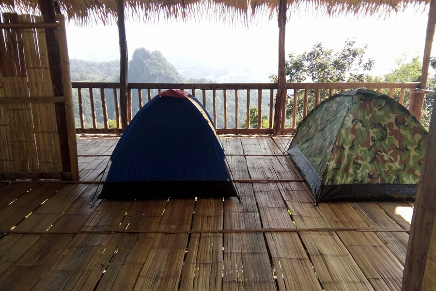 อีกหนึ่งโฮมสเตย์เล็กๆ บรรยากาศสุดฟิน ที่นอกจากจะมีที่พักแล้ว ยังมีลานกางเต็นท์เอาใจสำหรับกลุ่มแบคแพคอีกด้วย ในส่วนของห้องพักจะเป็นกระท่อมไม้ไผ่หลังเล็กๆ เรียงรายตามเนินเขา มีระเบียงหน้าห้อง ให้ชมวิวหมอกยามเช้ากันแบบส่วนตัว ด้านในเรียบง่าย มีเครื่องนอนและมุ้งเตรียมไว้ ที่สำคัญยังมีหมูกระทะให้ปิ้งกินกันแก้หนาว พร้อมชมวิวพระอาทิตย์ลับขอบฟ้ากันแบบโรแมนติก