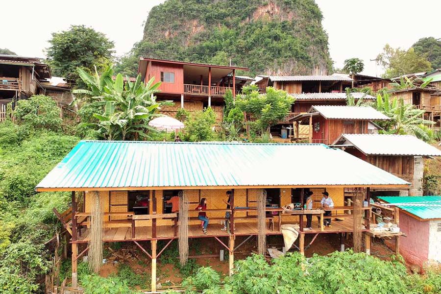 อีหนึ่งที่พักเล็กๆ แบบเรียบ่งาย โฮมสเตย์ชายขอบ ที่นี่มีให้บริการครบ ทั้งที่พัก ลานกางเต็นท์ ร้านอาหาร รวมถึงโปรแกมเสริมสุดแอ๊ดเวนเจอร์ อย่างกิจกรรมปีนเขา ชมถ้ำ และเดินป่า ในส่วนของห้องพักมีทั้งแบบสวีทพักเป็นคู่ และหลังใหญ่สำหรับหมู่คณะ ภายในตกแต่งได้อย่างโมเดิร์นน่าพัก ที่สำคัญยังมีชุดชนเผ่าพื้นเมือง ให้ยืมใส่ถ่ายรูปเก๋ๆ กันอีกด้วย พักที่นี่รับรองว่าครบทุกความต้องการจริงๆ