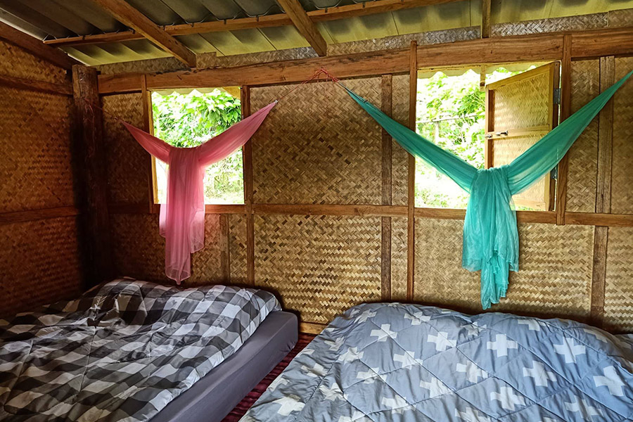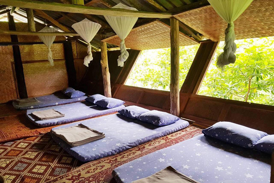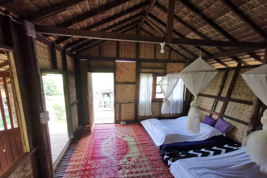 บ้านไม้ไผ่กลางทุ่งนา เมืองคองอ้ายด่องโฮมสเตย์ ท่ามกลางทุ่งนาอันเขียวขจีที่โอบล้อมไปด้วยขุนเขาและป่าไม้ ทำให้เมืองคองอ้ายด่องโฮมสเตย์ มีความเงียบสงบสุดๆ ที่นี่มีบ้านไม้ไผ่ให้บริการจำนวน 4 หลัง มีทั้งขนาดหลังเล็ก นอนได้ 2 คน หลังกลาง นอนได้ 4 คน และหลังใหญ่ นอนได้ถึง 8 คน ภายในห้องพักมีสิ่งอำนวยความสะดวกแบบเรียบง่าย มีห้องน้ำในตัวทุกหลัง นอนได้สบายๆ เป็นส่วยตัวสุดๆ นอกจากจะได้พักผ่อนกันอย่างเต็มที่แล้วที่นี่ยังมีกิจกรรมให้ได้เพลิดเพลินอีกด้วย ไม่ว่าจะเป็น ชมทะเลหมอก เดินชมถ้ำ ล่องห่วงยาง ล่องแพ และบริการนวดแผนไทย ครบทุกการพักผ่อนแน่นอน