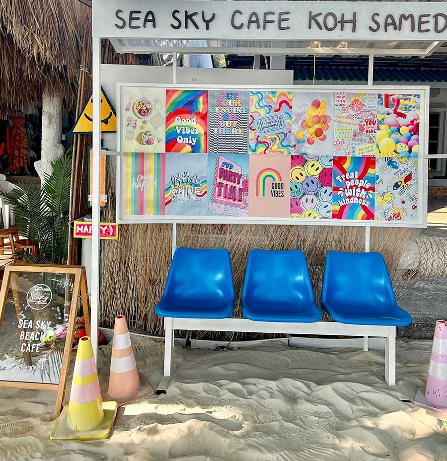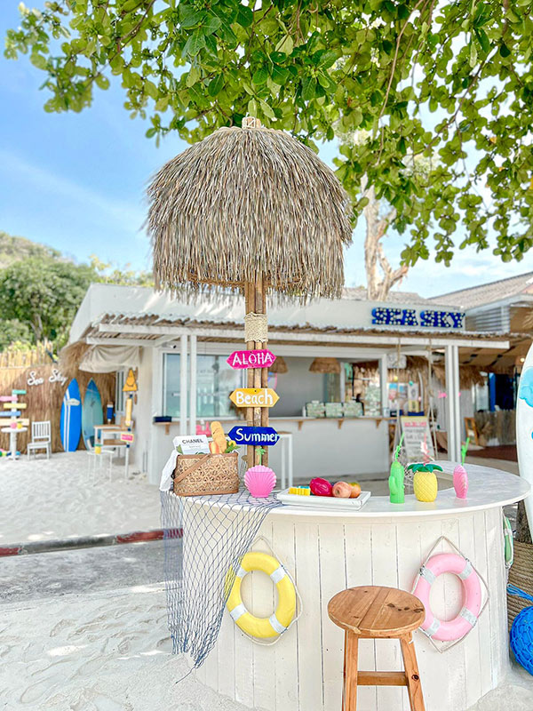 SEA SKY CAFE & ROOM KOH SAMED คาเฟ่ริมทะเลกับมุมถ่ายรูปน่ารักๆ เต็มไปหมด พูดถึงทะเลก็ต้องมีความสดใสและของตกแต่งน่ารักๆ ซึ่งที่นี่ก็ตอบโจทย์การเป็นคาเฟ่ริมทะเลด้วยการออกแบบสไตล์บาหลีและพร็อพสุดสดใสให้ได้ถ่ายรูปกัน บอกเลยว่ามีครบทุกความสดใส ใครที่ชอบถ่ายรูปสามารถกดชัตเตอร์ได้รัวๆ ส่วนเมนูทางร้านจะเน้นเสิร์ฟขนมหวานและเบเกอรี่ รวมถึงเครื่องดื่มสุดเฟรชที่ช่วยคลายร้อนอีกเพียบ