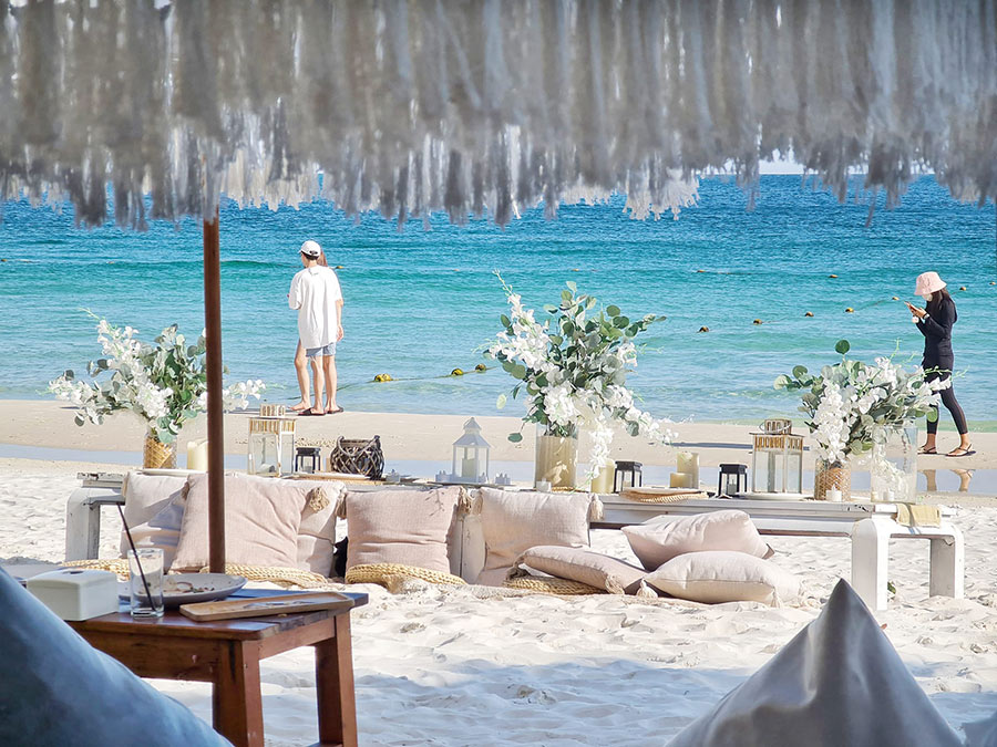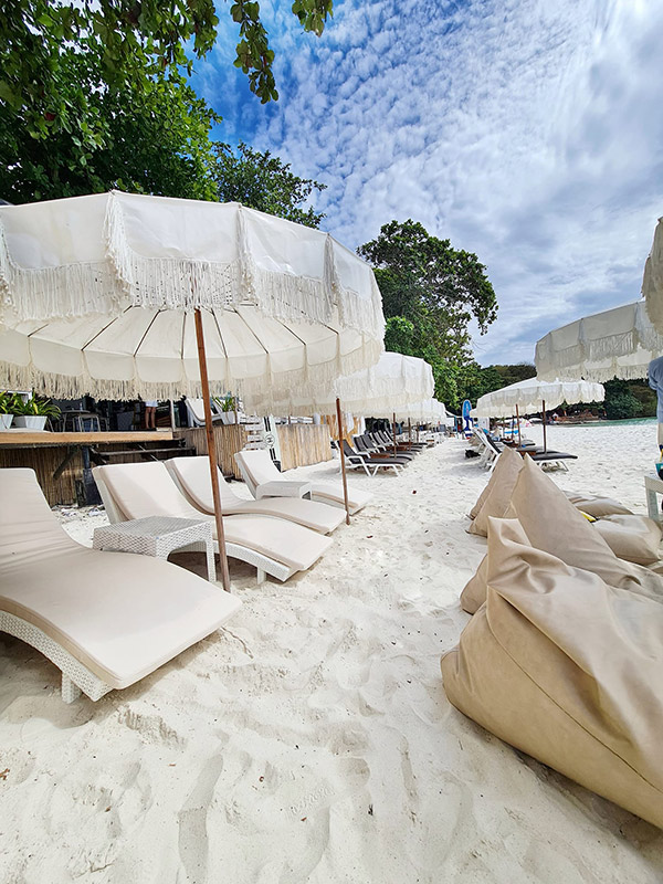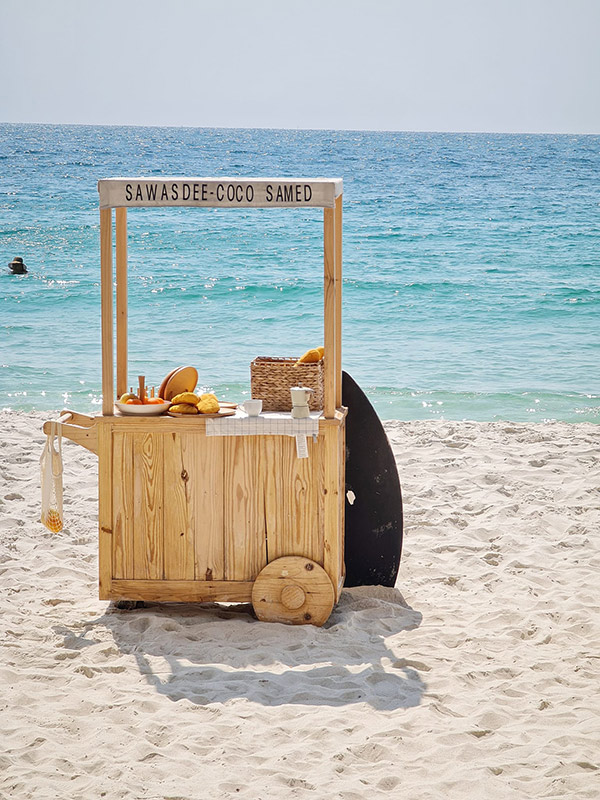 ออกจากเมือง นั่งเรือข้ามมาฝั่งเกาะเสม็ดกันบ้าง เริ่มที่แรกด้วย Sawasdee-coco Khosamed คาเฟ่สุดมินิมอลบนหาดทรายแก้วมาด้วยโทนสีขาวและน้ำตาล ซึ่งตัดกับสีน้ำทะเลฟ้าครามได้อย่างลงตัว ตัวร้านเน้นเป็นแบบเปิดโล่งมีที่นั่งในร่มและเก้าอี้บนหาด สำหรับใครที่อยากนั่งรับลม ฟังเสียงคลื่น แนะนำให้มาช่วงเย็นๆ จะชิลล์มากและแดดไม่ร้อนเกินไป แต่ถ้าสายโซเชียลอยากได้รูปสวยๆ ก็ต้องช่วงแดดจ้าๆ ถ่ายกับทะเลคือวิ้งสวยมาก บวกกับทางร้านมีมุมถ่ายรูปเยอะมาก เรียกได้ว่าเป็นร้านคาเฟ่ริมทะเลระยองที่ตอบโจทย์คนทุกกลุ่มจริง
