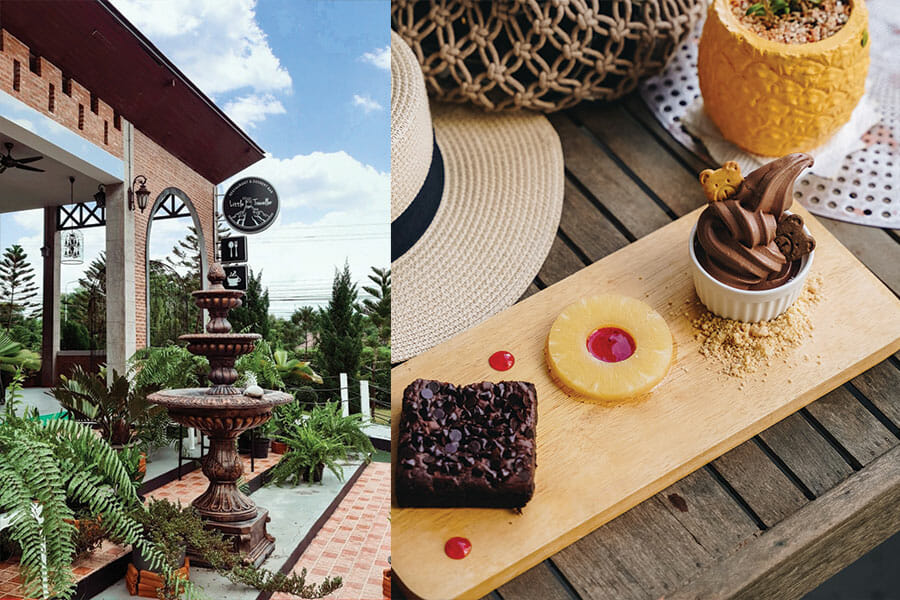 Little Traveller Coffee & Bar คาเฟ่สวยวิวขุนเขาที่แฝงตัวอยู่ท่ามกลางธรรมชาติของสวนผึ้ง เหมาะหนีความวุ่นวายในเมืองหลวงมาพักผ่อนชิลล์ๆ ดื่มด่ำบรรยากาศสบายที่โอบล้อมไปด้วยขุนเขาและความชุ่มฉ่ำ พร้อมเสิร์ฟอาหารและเครื่องดื่มทั้ง Little traveller signature, Rose butterflypea vs Hazelnut honey macchiato, Rose Butterfly Pea, Soft Serve Duet และอีกหลากหลายเมนูที่น่าลิ้มลอง! ใครที่มองหาสถานที่พักผ่อนบรรยากาศดี ไม่ไกลจากกรุงเทพอยู่ก็สามารถแวะมาพักผ่อนทิ้งตัวปล่อยใจไปกับ ลิตเติ้ล ทราเวลเลอร์ คอฟฟี่ & บาร์ กันนะ!