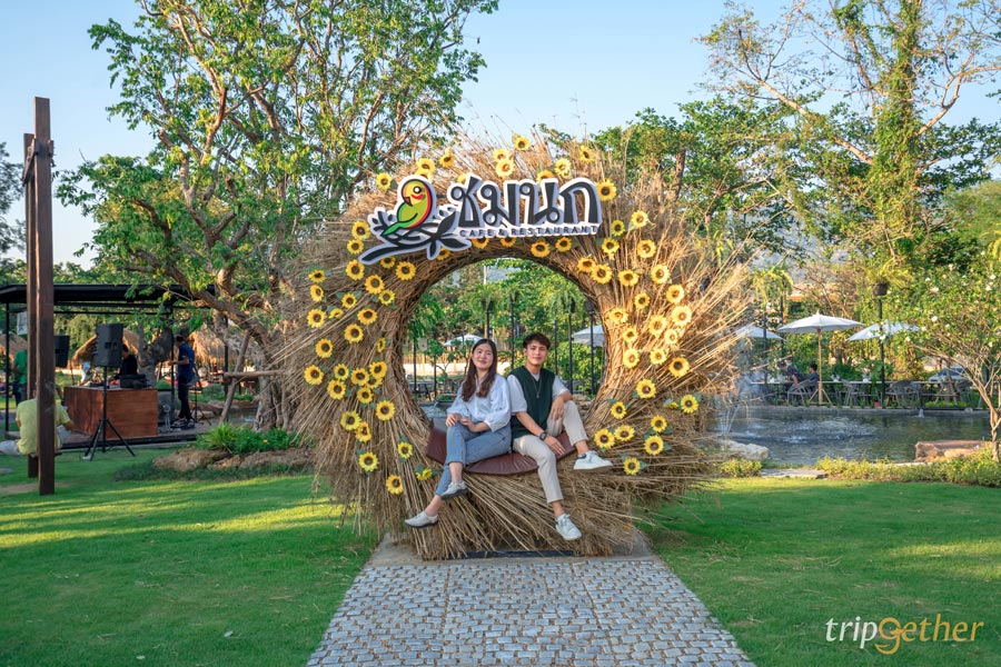 ก่อนกลับแวะมาใช้เวลาให้ความสุขทำงานกันอีกสักหน่อยที่ชมนก Cafe & Restaurant ร้านอาหารกึ่งคาเฟ่สุดชิลล์ของนครนายก ภายในร้านตกแต่งด้วยสไตล์ทรอปิคอลที่เรียกได้ว่ามองไปมุมไหนก็กรีนและสบายตาแบบสุดๆ มีทั้งสระน้ำที่มีปลาคาร์ปนับร้อยว่ายวนอยู่ น้ำตกที่ฟังเสียงน้ำแล้วสบายใจมาก และสนามหญ้ากับเหล่าต้นไม้ที่ตกแต่งไว้ทั่วทั้งพื้นที่ของร้าน ช่วงเย็นๆ มาเดินเล่น วิ่งเล่น หรือจะนั่งเล่นรับลมเย็นๆ ก็ดีสุดๆ โซนที่นั่งของร้านก็มีให้เลือกทั้งแบบอินดอร์และเอาท์ดอร์เลย