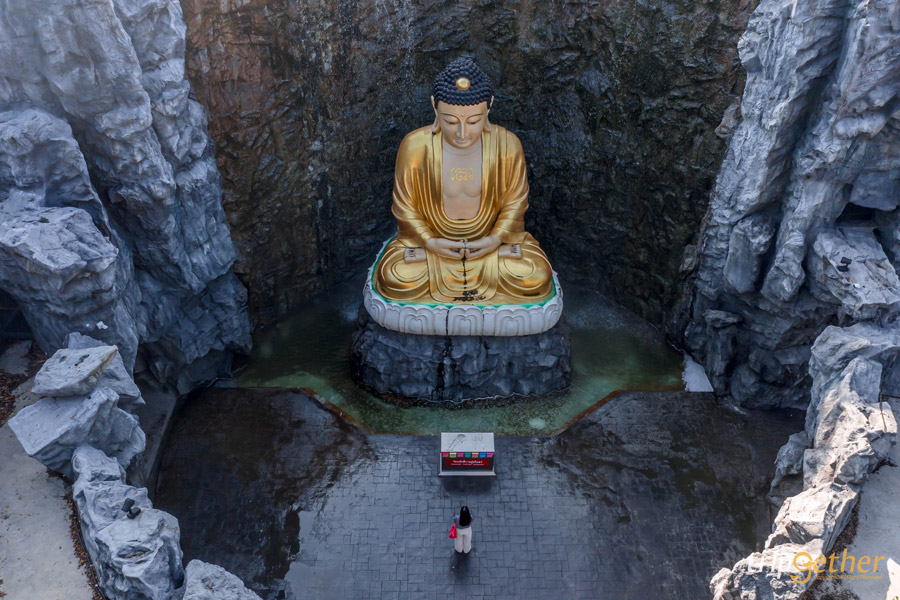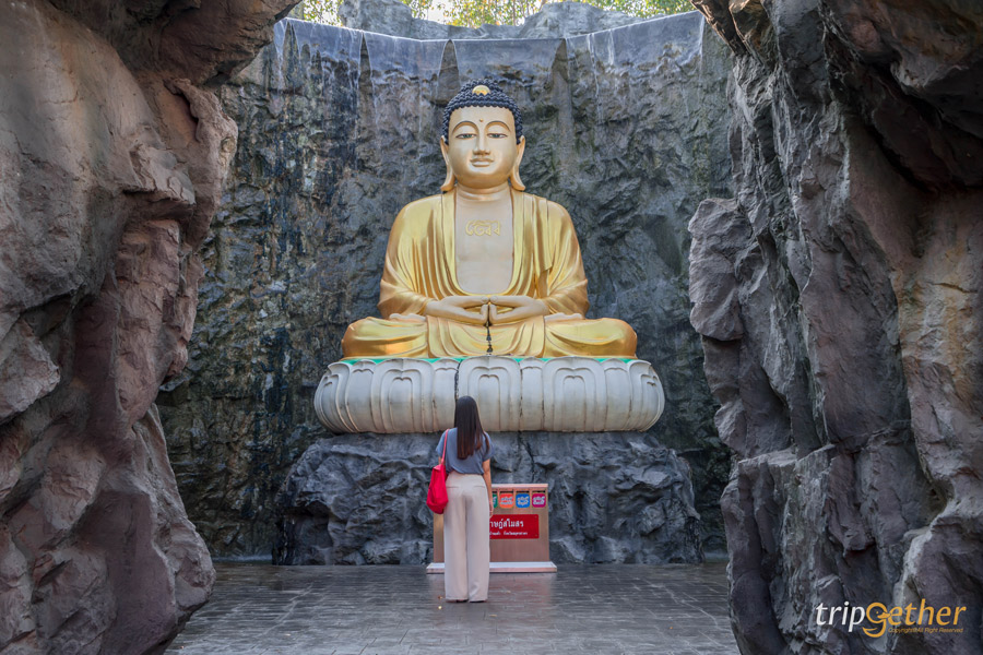 สมุทรสงครามและสมุทรสาคร จังหวัดที่เรียกได้ว่าใกล้กรุงเทพแบบมากๆ ขับรถเพียงไม่นานก็ถึงแล้วเหมือนกับว่ายังไม่ทันได้ออกจากเมืองหลวงเลย และแน่นอนว่าใกล้ขนาดนี้ก็ต้องจัดวันเดย์ทริปรัวไปเลย 2 จังหวัด มาเริ่มต้นทริปกันที่สมุทรสาคร ซึ่งสถานที่แรกที่เราจะไปก็คือ วัดหลักสี่ราษฎร์สโมสร วัดสุดร่นรื่นและบรรยากาศดีที่อยู่ติดกับคลองอัมพวา ไฮไลท์ของวัดแห่งนี้ก็คืออุทยานหลวงพ่อโตมหายาน พระพุทธรูปองค์ใหญ่ที่ตั้งตระหง่านอยู่ท่ามกลางถ้ำจำลองที่มีน้ำตกไหลเป็นฉากอยู่ด้านหลังองค์พระ ซึ่งบรรยากาศภายในเวิ้งถ้ำจำลองเย็นสบาย สงบ และร่มรื่นเป็นที่สุด ถือเป็นอีกมุมที่ถ่ายรูปเช็คอินสวยๆ ได้เลย เหมือนอยู่ญี่ปุ่นแบบสุดๆ