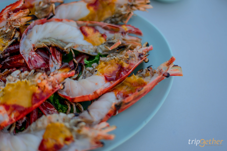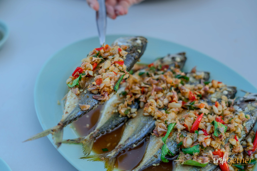เรื่องความสดของซีฟู้ดที่ร้านไม่ต้องกังวัลเลย เพราะว่าสดมาๆ เรียกได้ว่าทั้งปลา กุ้ง เนื้อกรุบ หวานอร่อยสุดๆ เมนูที่มาแล้วต้องห้ามพลาดเลยก็คือกุ้งแม่น้ำเผา เสิร์ฟมาเน้นๆ แบบ 1 กิโลกรัมเต็มๆ เนื้อกุ้งกรึบๆ มันกุ้งฉ่ำๆ เยิ้มๆ กินพร้อมกับน้ำจิ้มซีฟู้ดสุดแซ่บ บอกเลยว่าฟินเว่อร์ และแน่นอนว่ามาแม่กลองทั้งทีจะพลาดเมนูขึ้นชื่ออยากปลาทูไปได้ยังไง ปลาทูซาเตี๊ยะ เมนูต้นตำรับของชาวแม่กลอง ปลาทูตัวเป้ง 5 ตัวราดด้วยน้ำซอสขลุกขลิกรสเปรี้ยวหวานโรยด้วยกระเทียมเจียว ใบมะกรูดทอด และพริกสด หอมกรุ่นมากๆ