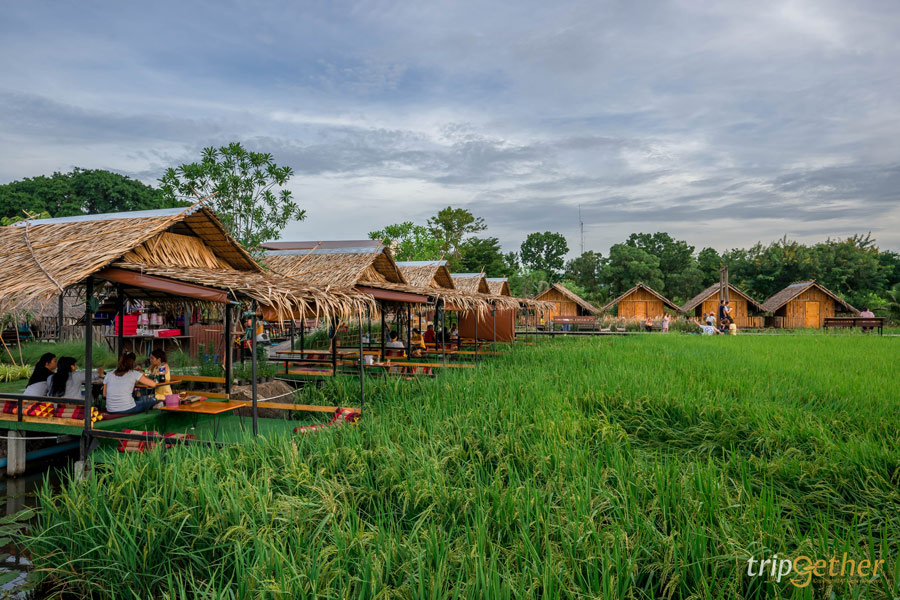 ระหว่างรออาหารก็สามารถมานั่งเปลตาข่าย เอนตัวนอนสักหน่อยก็ได้ แล้วถ้ามาช่วงเย็นก็มองฟ้าสีพาสเทลก่อนตะวันจะลับฟ้าที่สะท้อนกับน้ำ หรือจะมองวิวทุ่งน้าสุดกว้างไกลที่กรีนแบบสุดๆ ก็ได้อีกด้วย