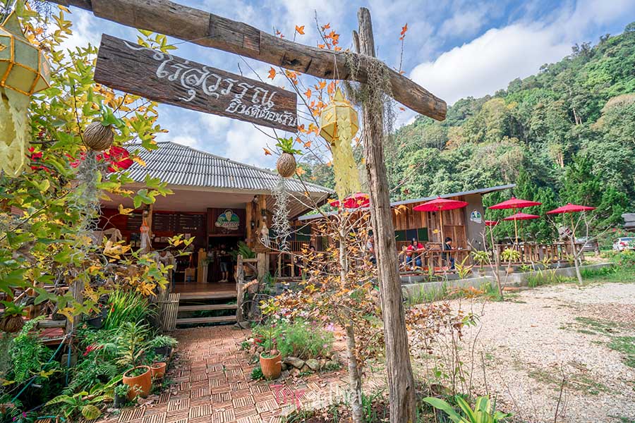 ปิดท้ายมาชมความสวยงามกับเหล่าดอกไม้กันที่ ไร่สุวรรณ ที่นี่เป็นจุดเช็คอินที่บริการทที่พัก ลานกางเต็นท์ และคาเฟ่ ที่ตั้งอยู่บนดอยแม่แจ๋มท่ามกลางป่าสีเขียวและภูเขา แถมยังอยู่เคียงกับสวนแมคคาเดเมียและกาแฟ ส่วนมุมไฮไลท์ก็ต้องยกให้กับอุโมงค์ดอกบ๊วยสีขาวอมเหลือง กลิ่นหอมหวลได้ฟีลเหมือนอยู่ญี่ปุ่น ซึ่งจะบานปีละครั้งช่วงเดือนธันวาจนถึงมกราคม ส่วนเมนูที่นี่โดดเด่นเรื่อกาแฟ มีทั้งกาแฟแมคคาเดเมีย กาแฟขี้ชะมด และเมนูแปลกซิกเนเจอร์อย่าง น้ำพริกแมคคาเดเมียให้ลิ้มลองกันด้วย