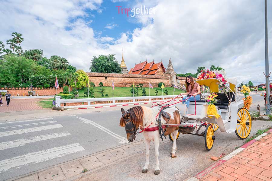 เร่ิมต้นกันแบบสิริมงคลกันก่อน วัดพระธาตุลำปางหลวง วัดสำคัญคู่บ้านคู่เมืองของจังหวัด ที่คาดกันว่าสร้างในสมัยพุทธศวรรษที่ 20 อายุหลายร้อยปี ที่นี่งดงามด้วยงานสถาปัตยกรรมโบราณมากมาย ทั้งประตูโขง วิหารหลวง กุฏิพระแก้ว และองค์พระธาตุ ซึ่งเป็นพระธาตุประจำปีฉลู ที่คนปีวัวต้องมากราบไหว้ให้ได้สักครั้ง นอกจากนี้ยังมีพิพิธภัณฑ์และศิลปะให้ได้ชมอีกหลายจุด และอีกหนึ่งกิจกรรมที่ไม่ควรพลาดก็คือการมานั่งรถม้า โพสต์ท่าสวยที่บริเวณหน้าวัด
