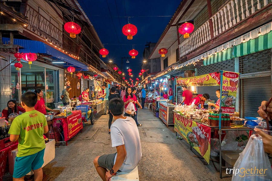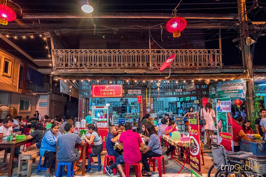 ตลาดจีนโบราณชากแง้ว ตลาดเก่าที่อายุกว่า 500 ปี ที่ถูกรังสรรค์ใหม่ให้กลายมาเป็นสถานที่ท่องเที่ยวของชุมชนชากแง้ว ซึ่งมีของอร่อยขายเพียบ ไม่ว่าจะเดินไปมุมไหนก็ถ่ายรูปสวยๆ ได้ ซึ่งพ่อค้าแม่ค้าส่วนมากจะเป็นคนในชุมชนที่จะคัดเอาของดีอาหารอร่อยสืบทอดกันจากรุ่นสู่รุ่นมาให้เราได้ชิมกันเพียบ สำหรับคนที่อยากถ่ายรูปเข้าธีมกับตลาดจีนโบราณชากแง้ว ที่นี่ก็มีชุดกี่เพ้าขายด้วย สามารถหาซื้อมาใส่ถ่ายรูปเก๋ๆ รับรองดีต่อใจแน่นอน